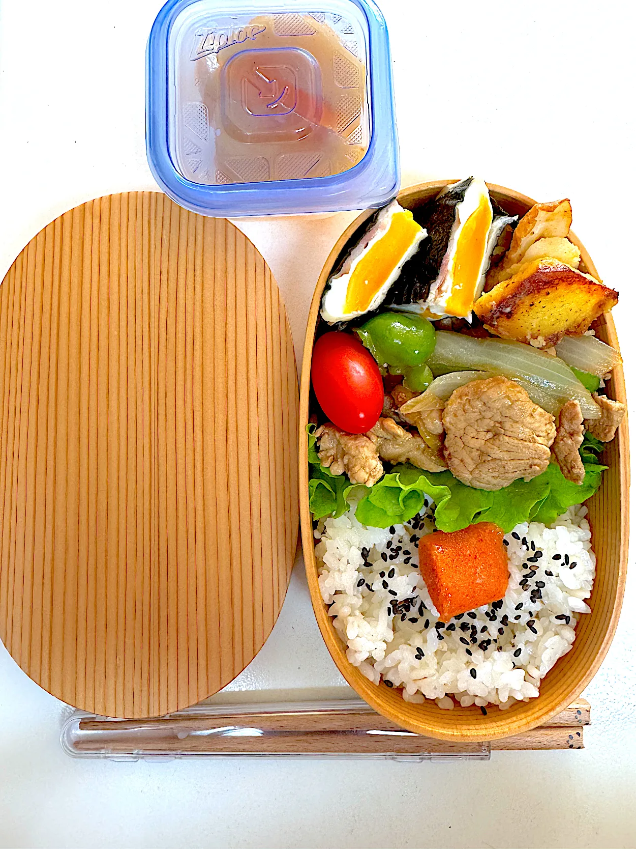 🍱豚肉と玉葱とピーマンの焼肉タレ炒め