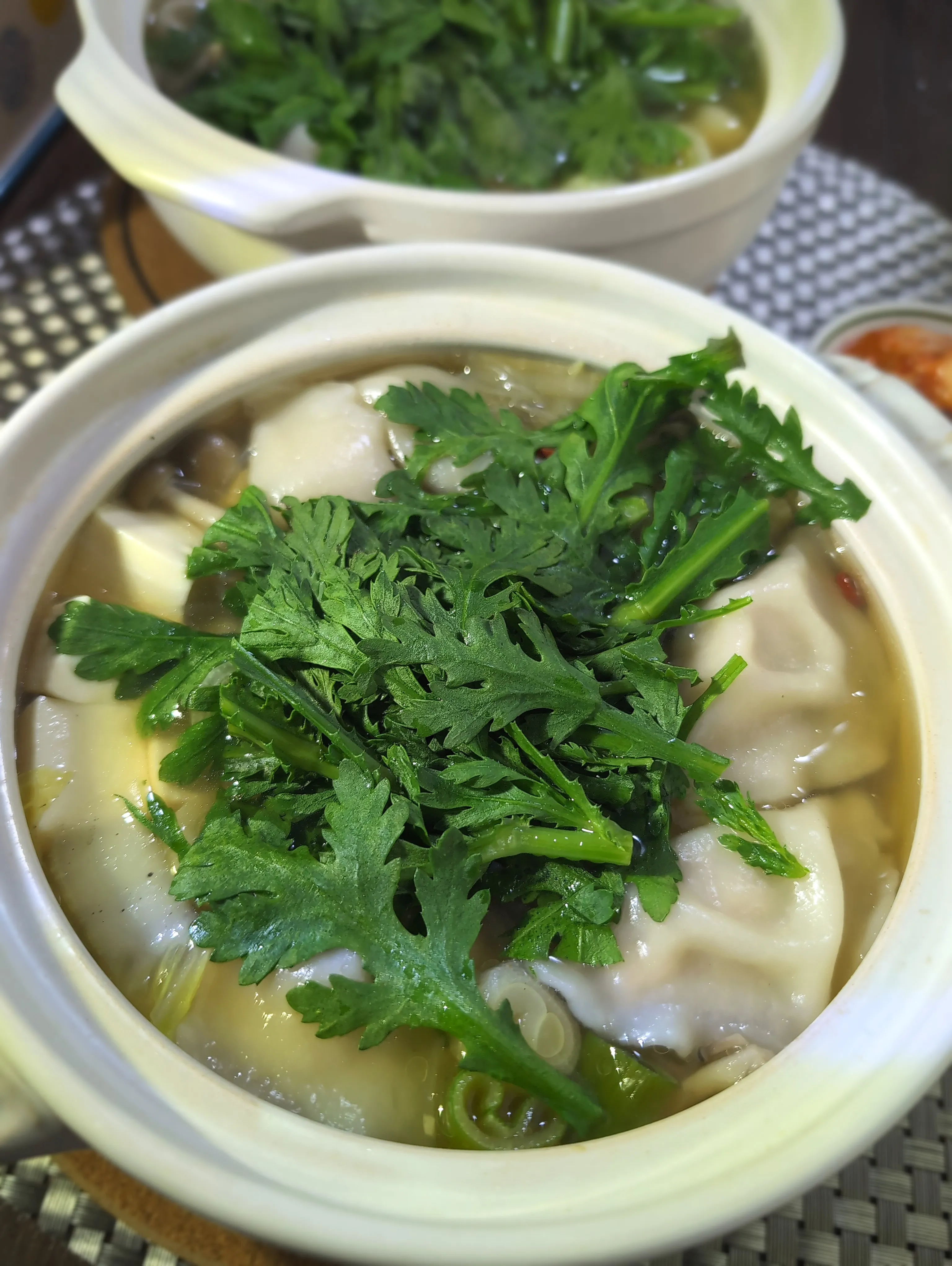 今夜は鶏団子鍋🍲後から水餃子投入🥟