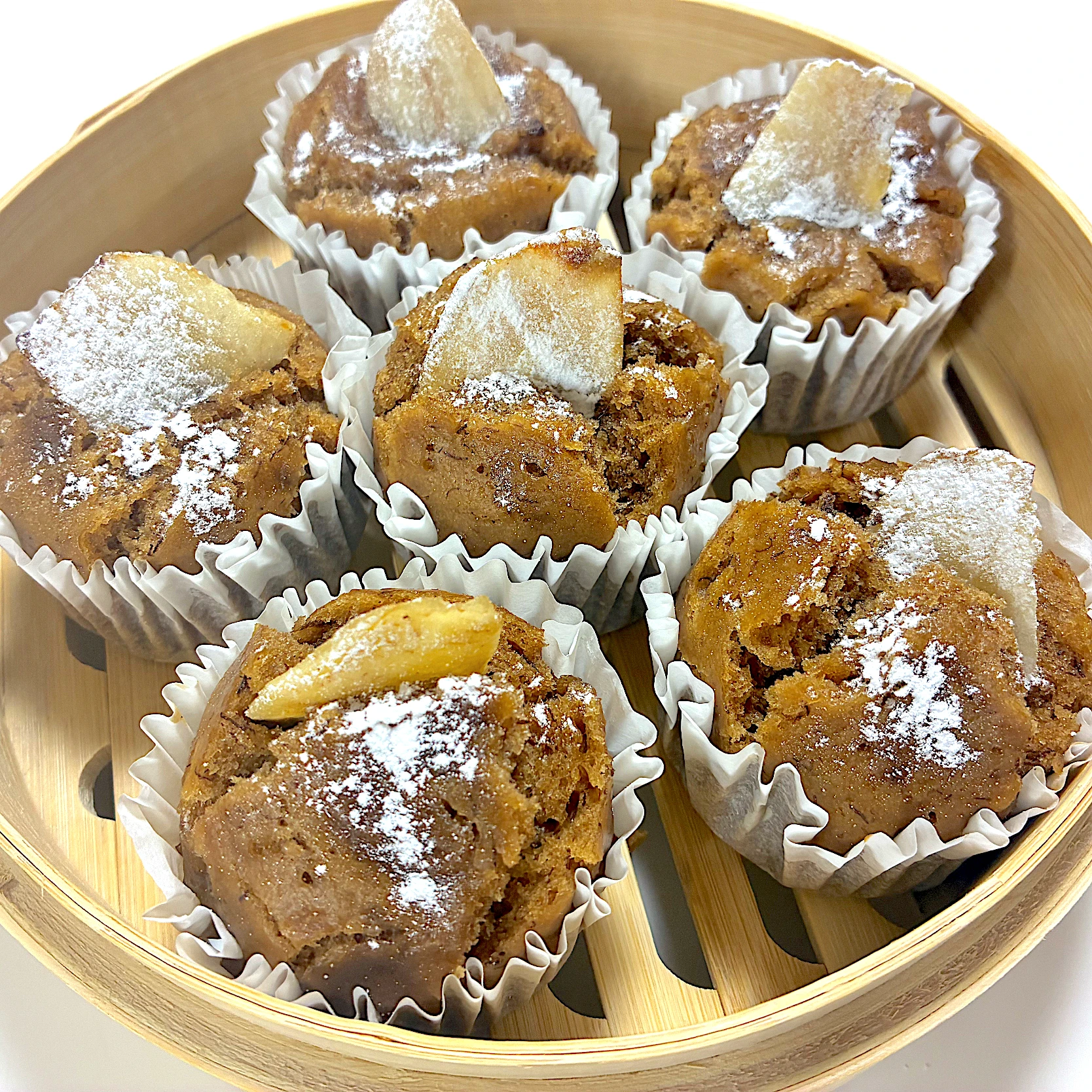 真ん中には蒸し上がりにバナナチップ🍌をのせました😊 #レーズン酵母#バナナ#蒸籠#元種 #ケーキ