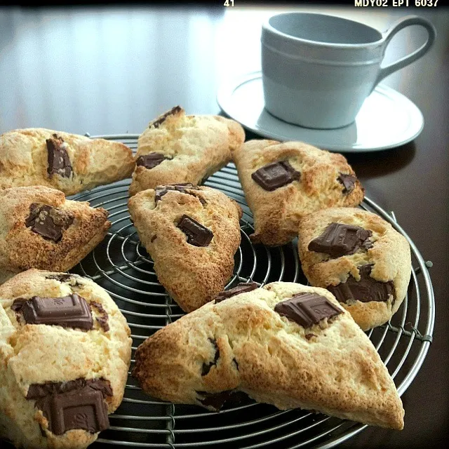 チョコ大好きなの😊たくさん入れて大満足💖小さめスコーンだから、2つペロリ😁