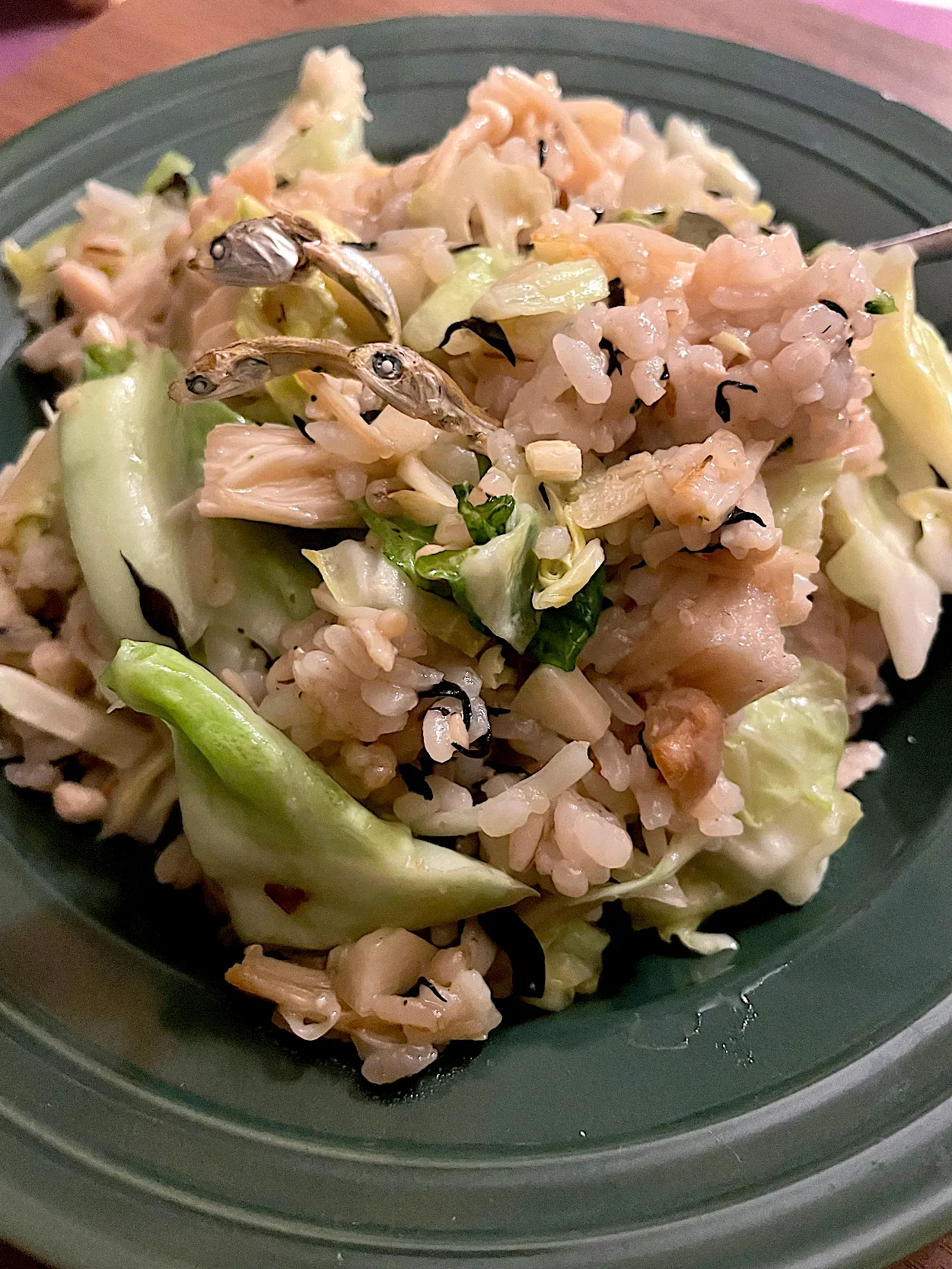 塩麹の砂肝炒めの残り汁で作った炒飯