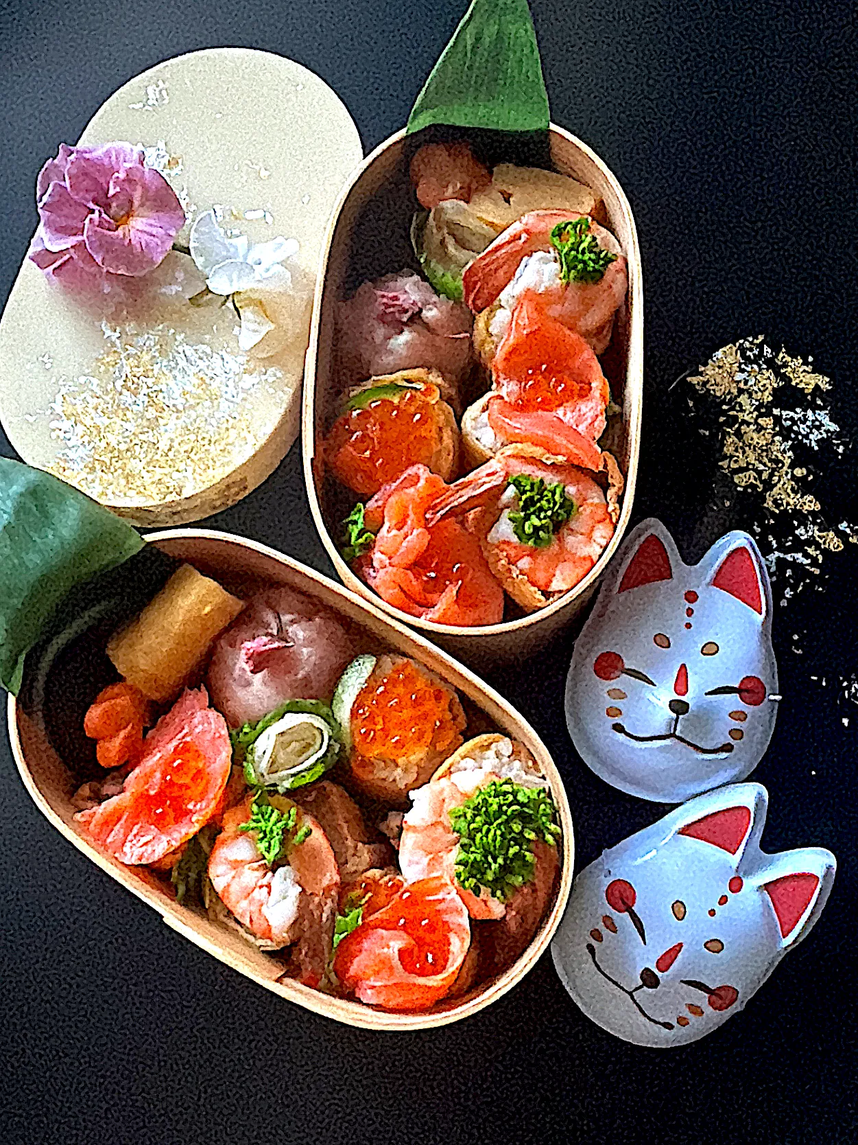 飾りいなり寿司で,気持ちにも花が咲きますね゚+.゚(´▽`人)゚+.゚✨