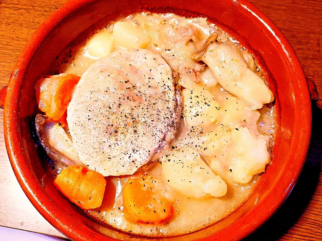栃木和牛のシチュー残り物をハンバーグでカスエラ煮込み料理〜🧑‍🍳