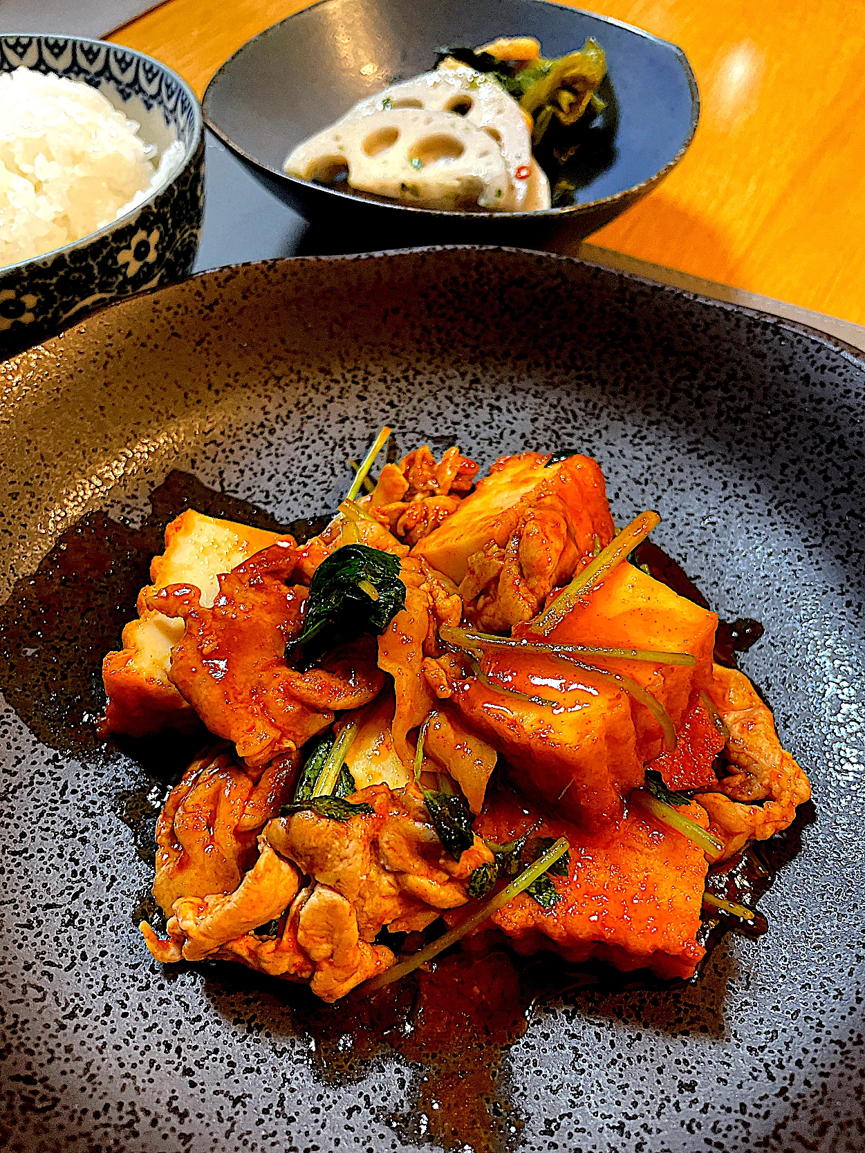 • 豚肉と厚揚げのコチュジャン炒め