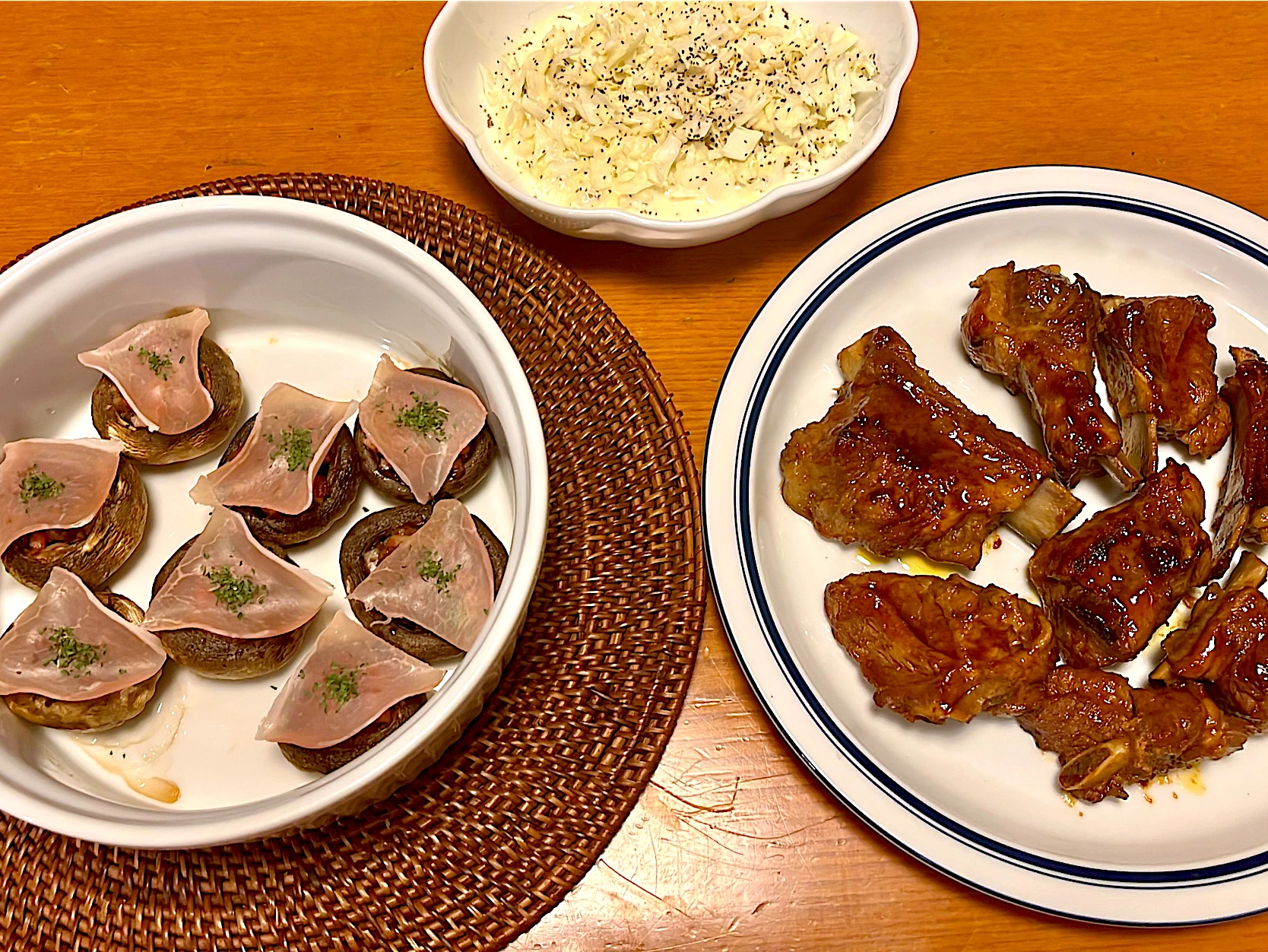 #白米 #スペアリブ #マッシュルームセゴビア風 #コールスローサラダ #トニーローマ に似せて