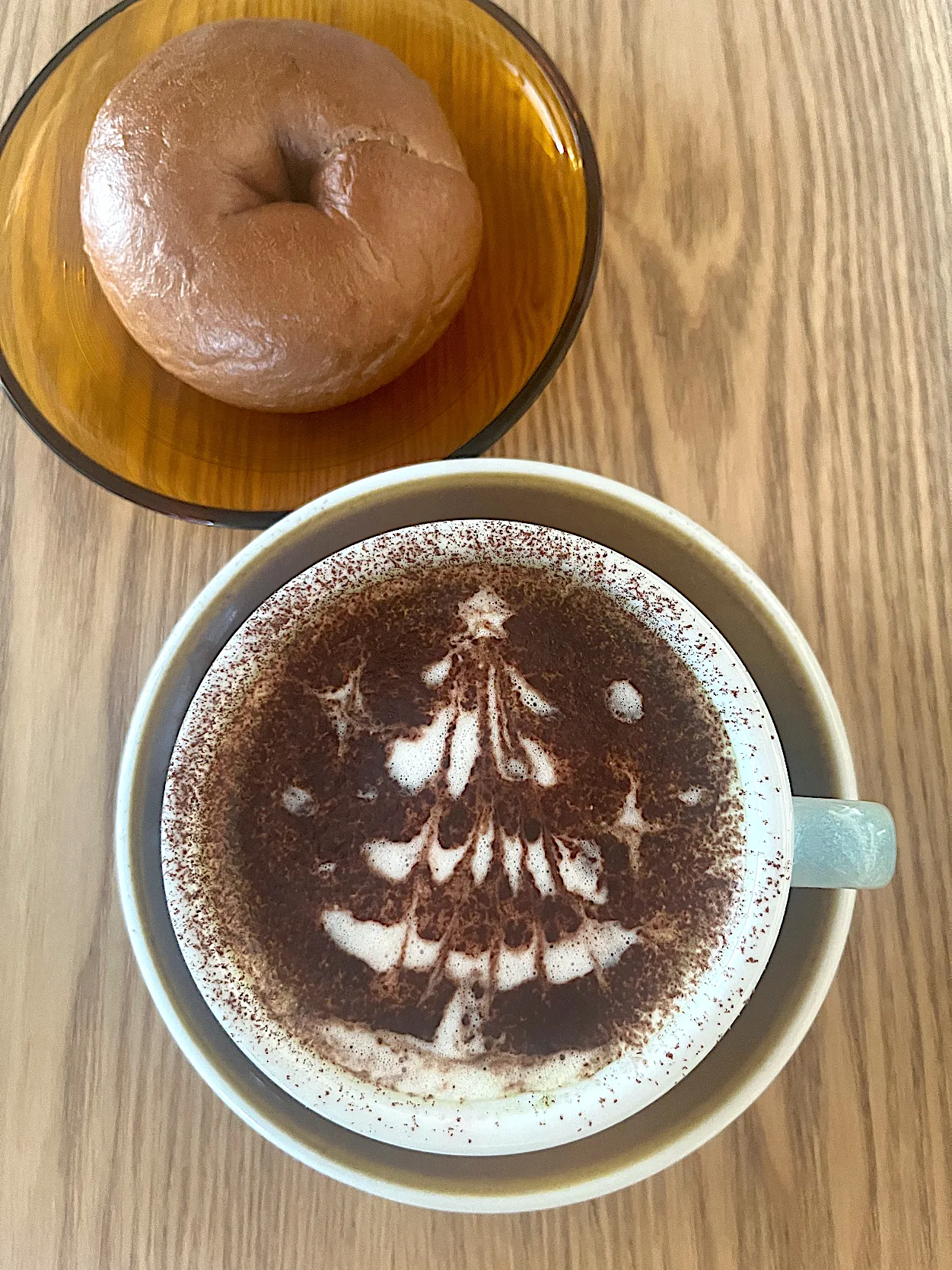 腕、そんなに上がってないんだけど、フリーポアで描く以外のアートがあるのを知って、作りやすいラテアートを楽しんでいます🎄