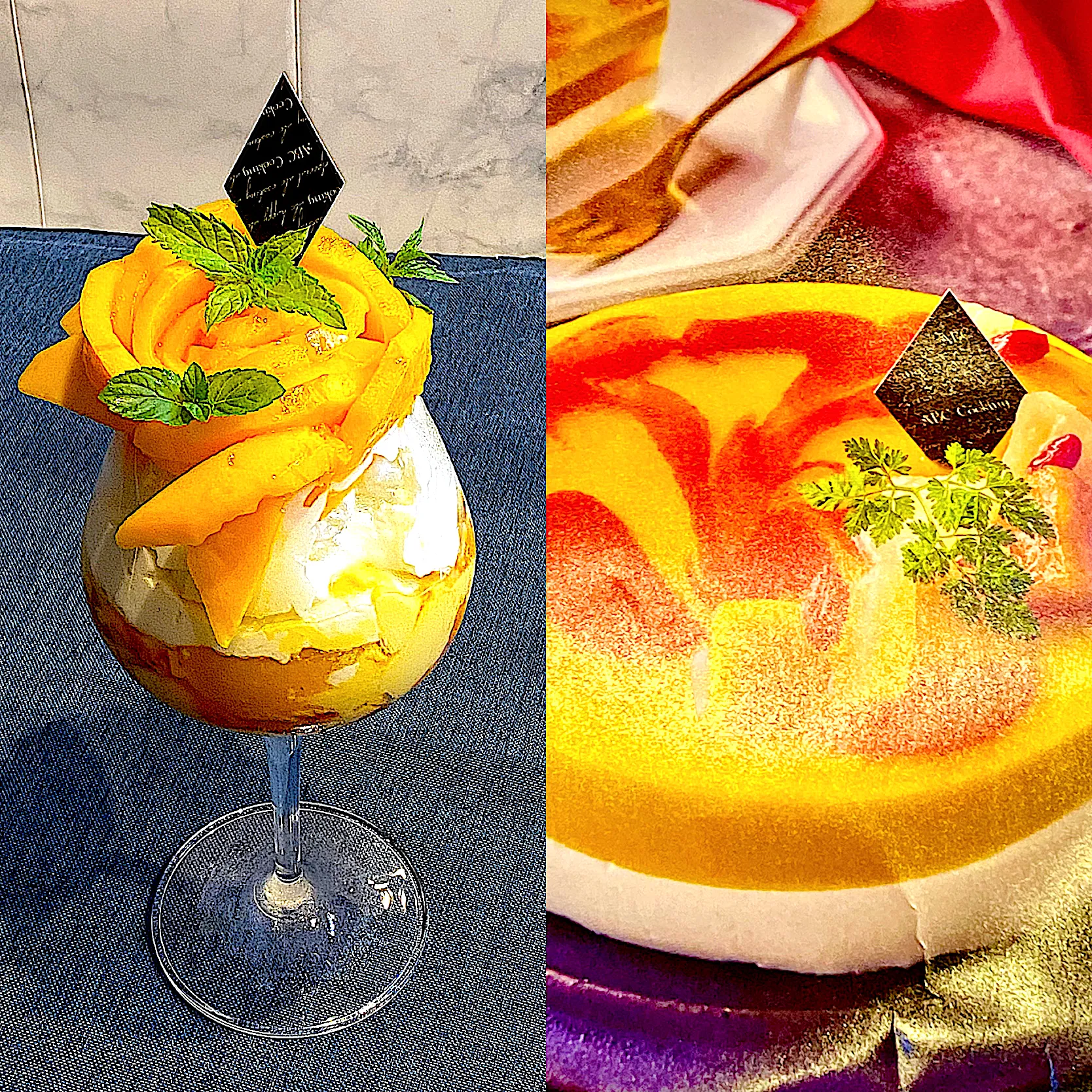 仕方ないないからマンゴプリンを下に杏仁ムースを乗せてマンゴーを飾りました☺️