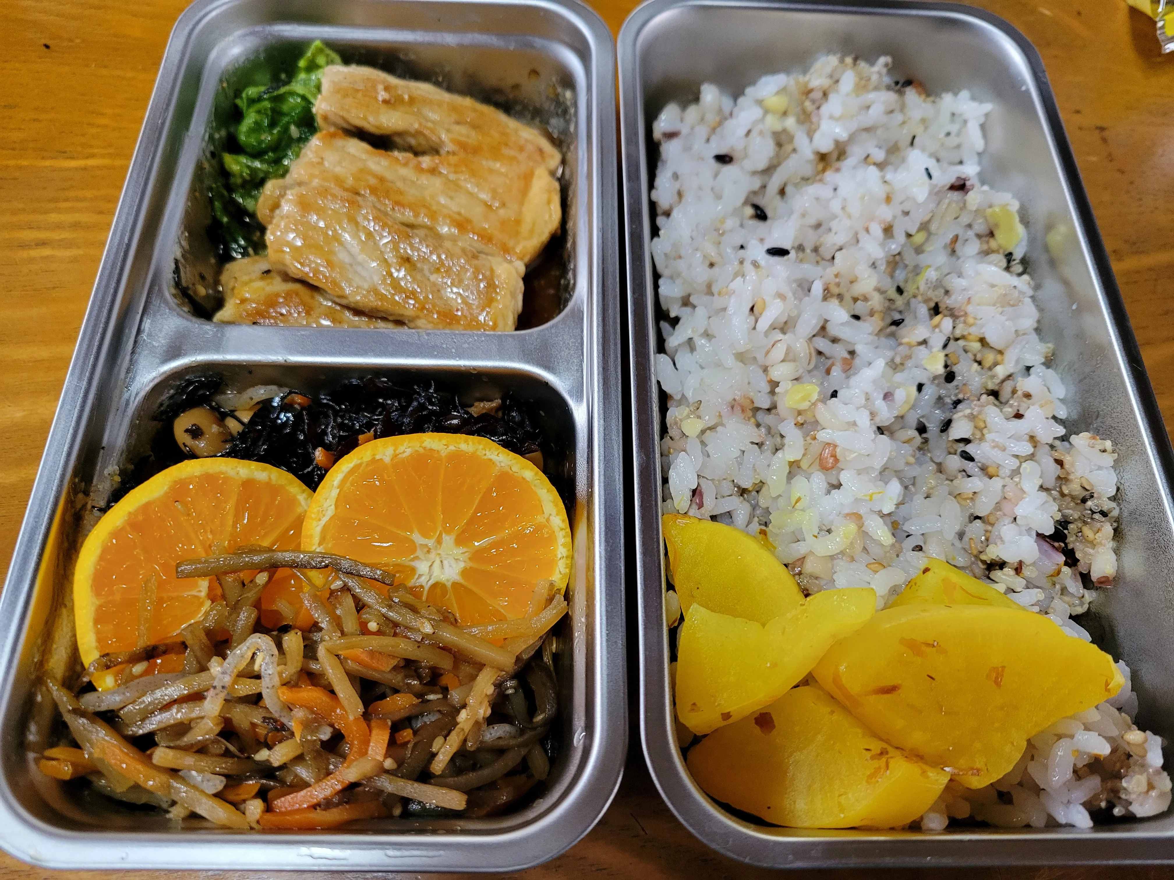 #お弁当 #おかず #ぶた肉 #きんぴらごぼう #十六穀米ごはん #ひじきの煮物