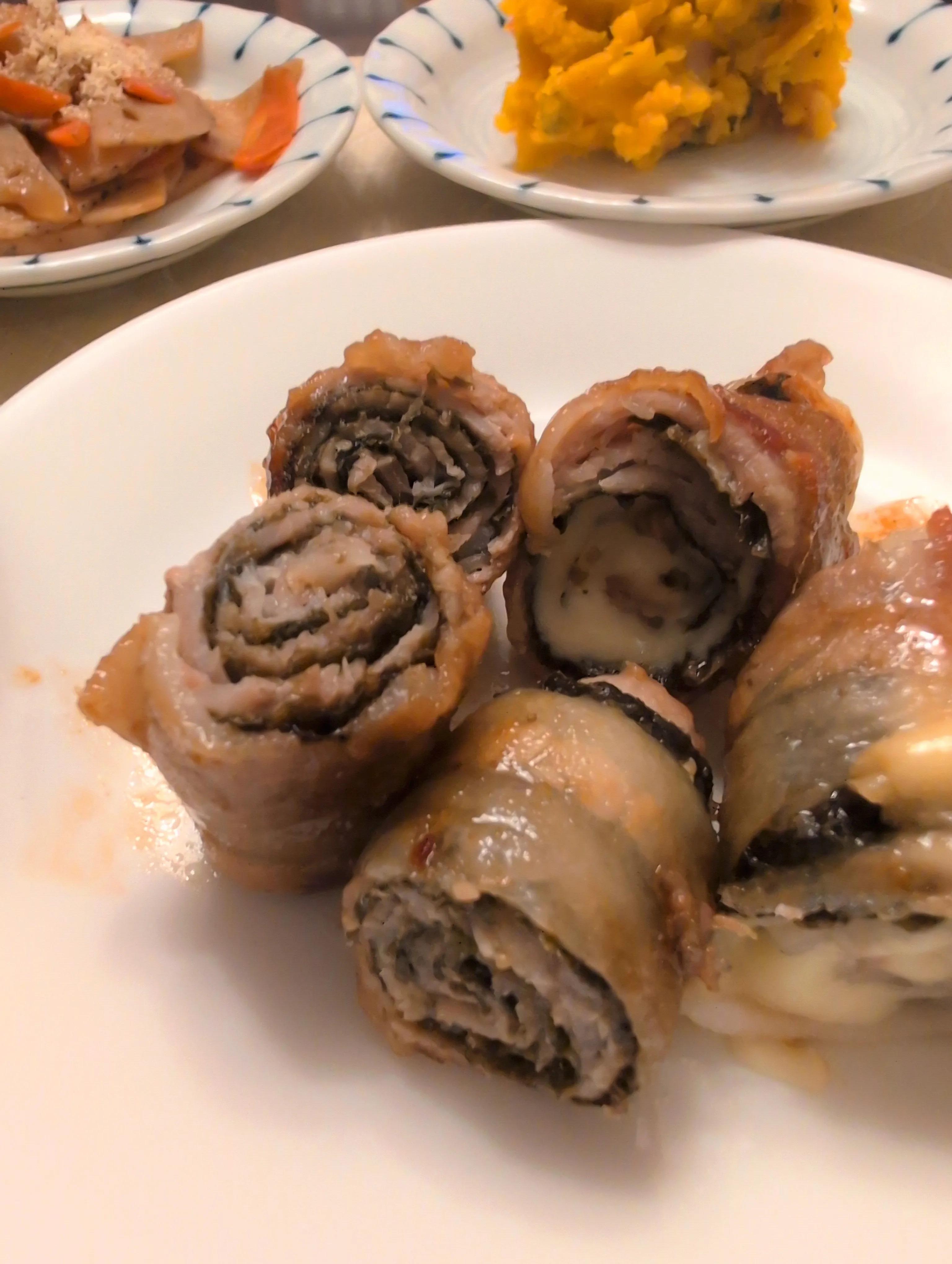 20251201晩ごはん #肉巻き #海苔 #スライスチーズ