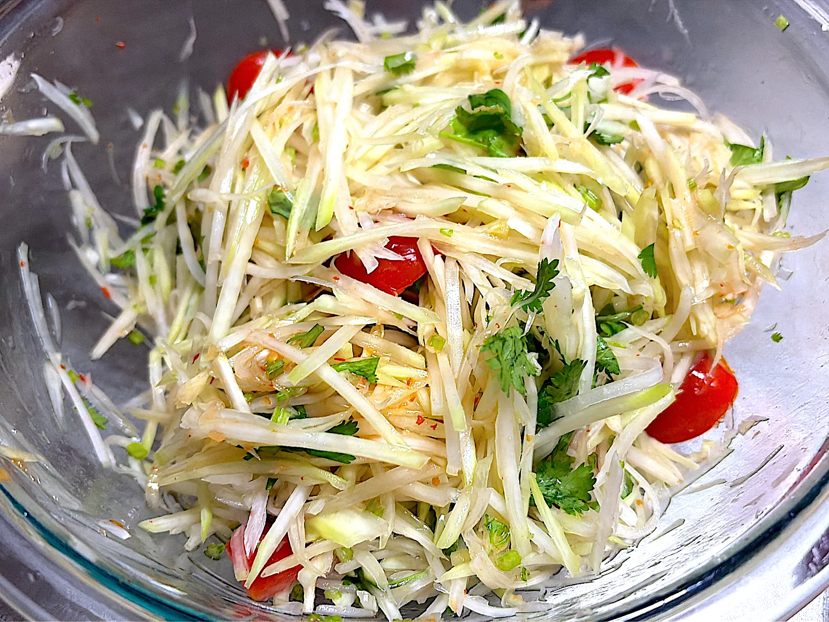 #豆腐と玉子の餡かけ丼 #カボチャサラダ #ソムタム