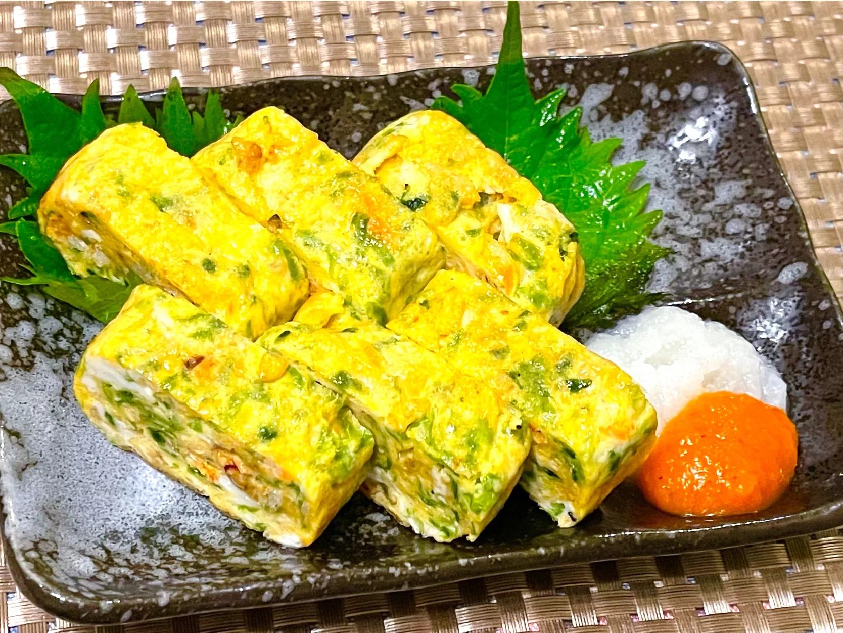 生海苔と桜海老を入れて玉子焼きに