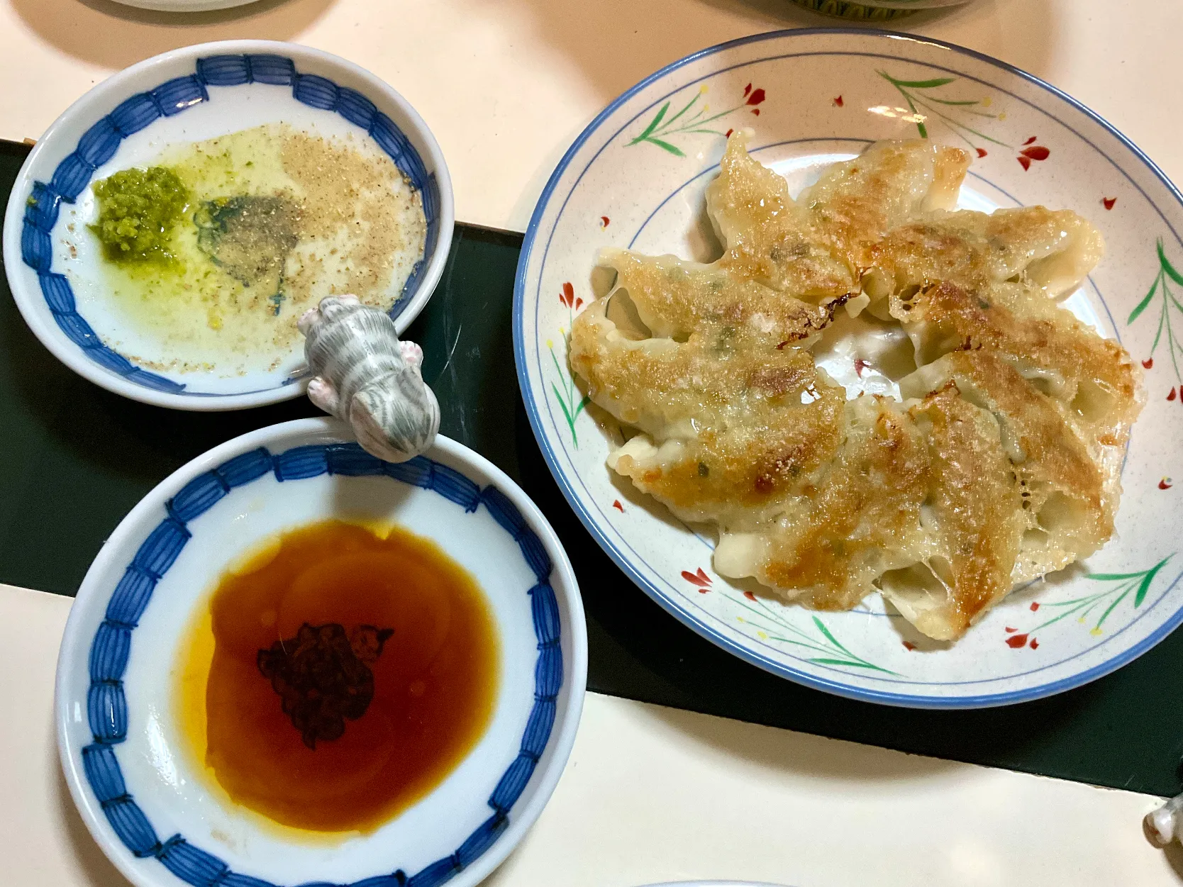 酢+手作り柚子胡椒のタレと醤油+酢+辣油のタレで