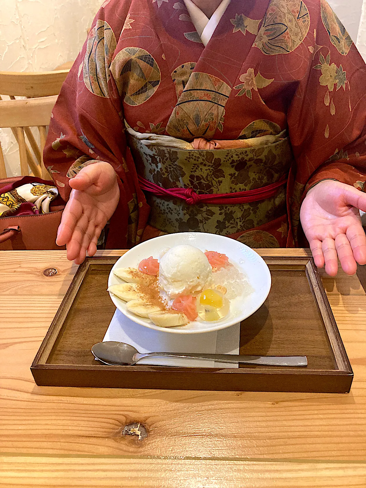大須観音そばの甘味処「瓢堂」さん はやとは冷たいココナッツぜんざいをいただきまーす😋(実況中継中)