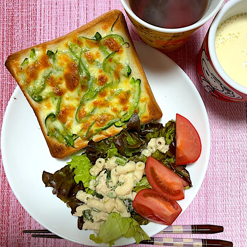 #朝ご飯 #食パン #サラダ #豆乳 #美酢活 #紅茶