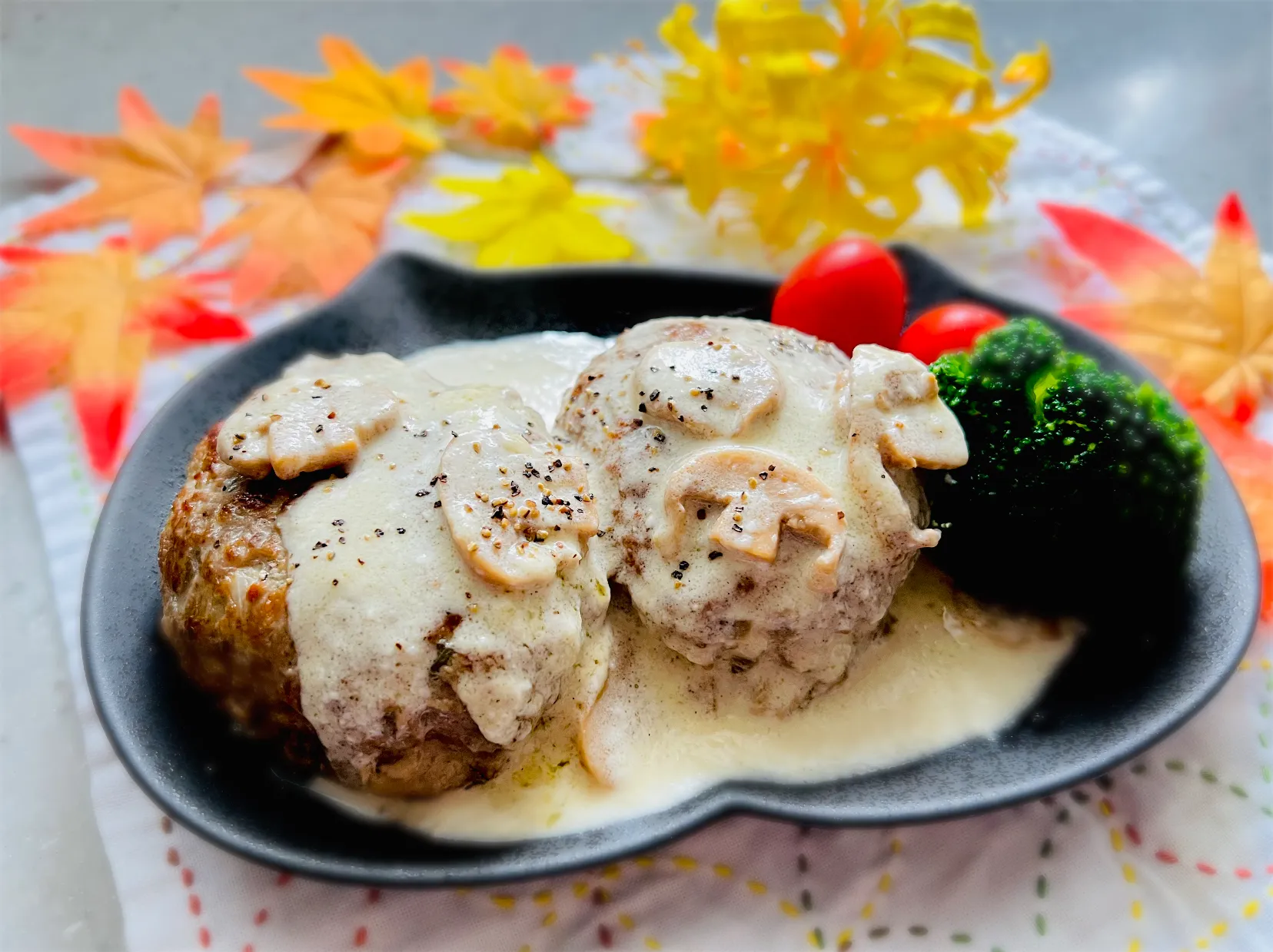 ホワイトソースハンバーグって