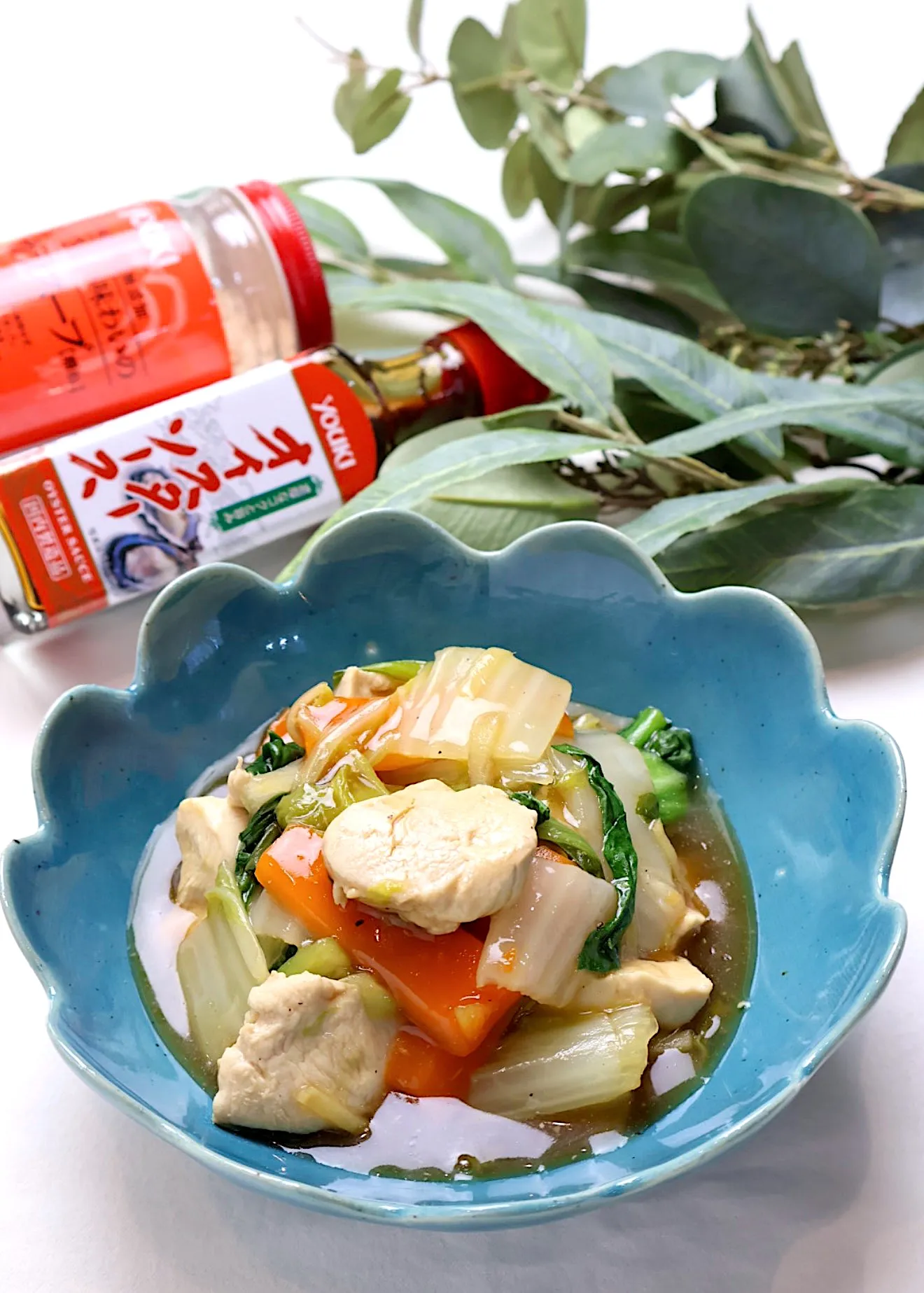 とろみの付いた、やさしい味わいのガラスープやオイスターソースの中華風な汁が、具材に絡んでめちゃウマです😋✨️