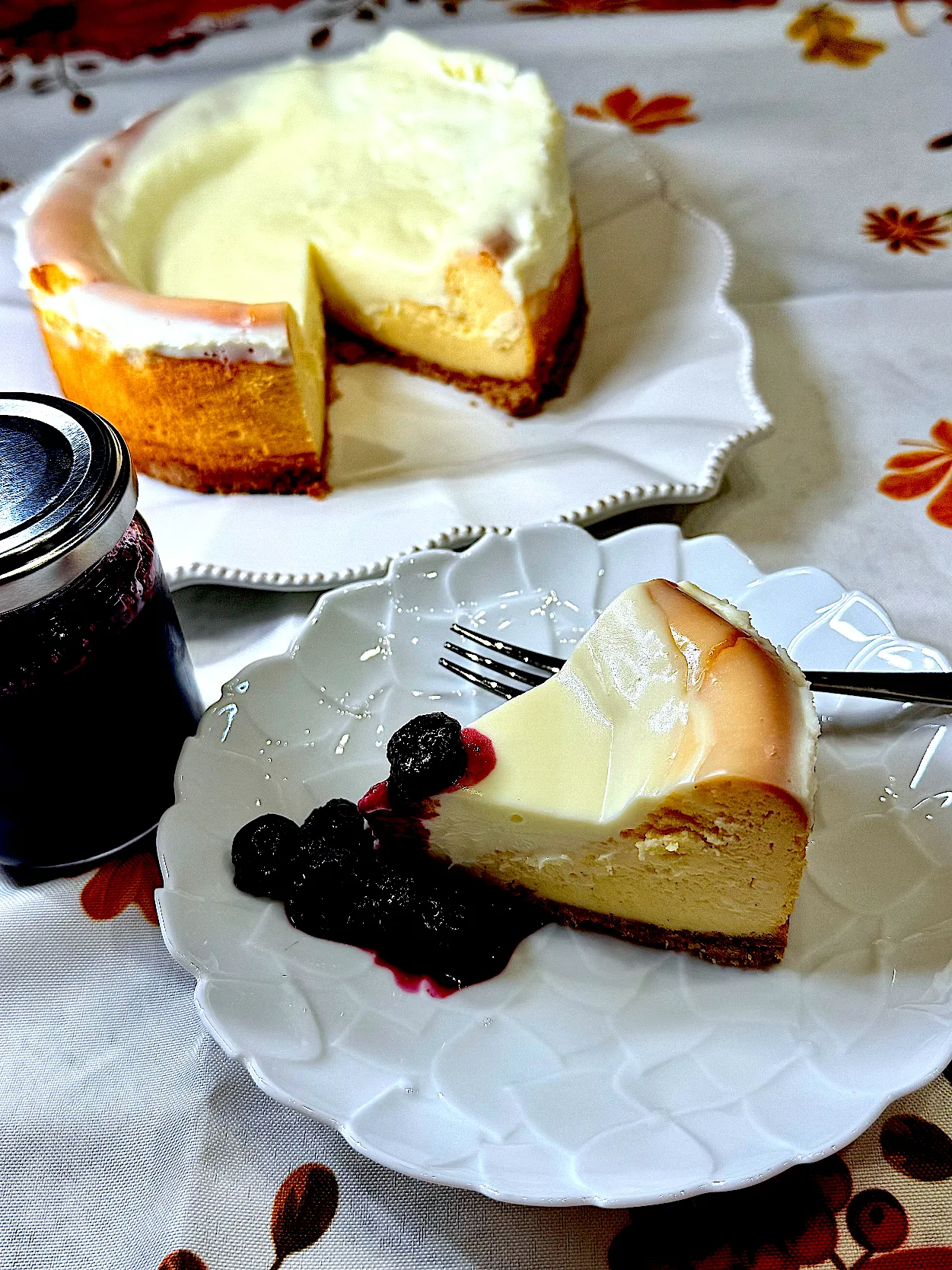 チーズケーキにブルーベリー🫐ソースはめちゃ合います☺️