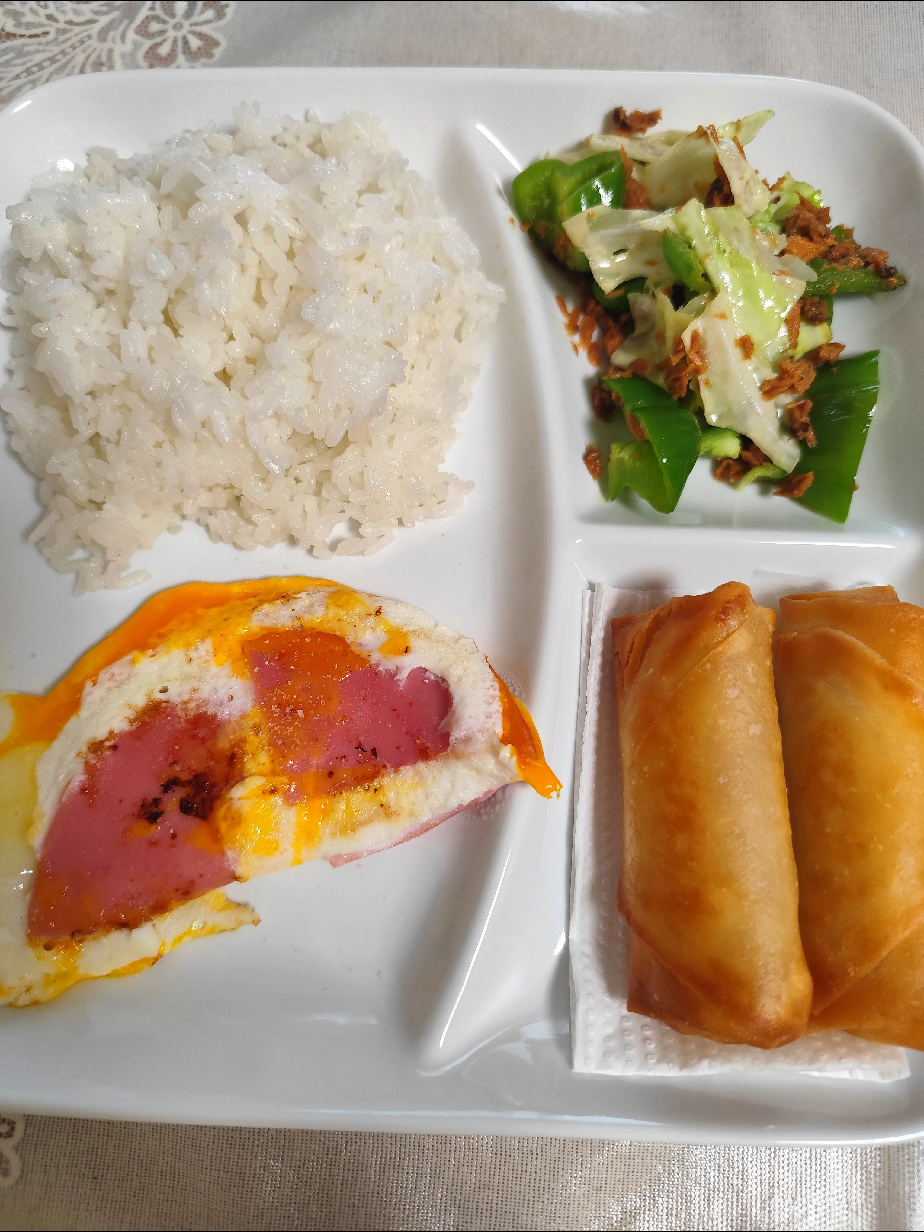はごろもフーズのまぐろ味付け缶のが息子気に入っていて、ピーマンとキャベツと合わせました!他はサラダハムエッグ、生協春巻き