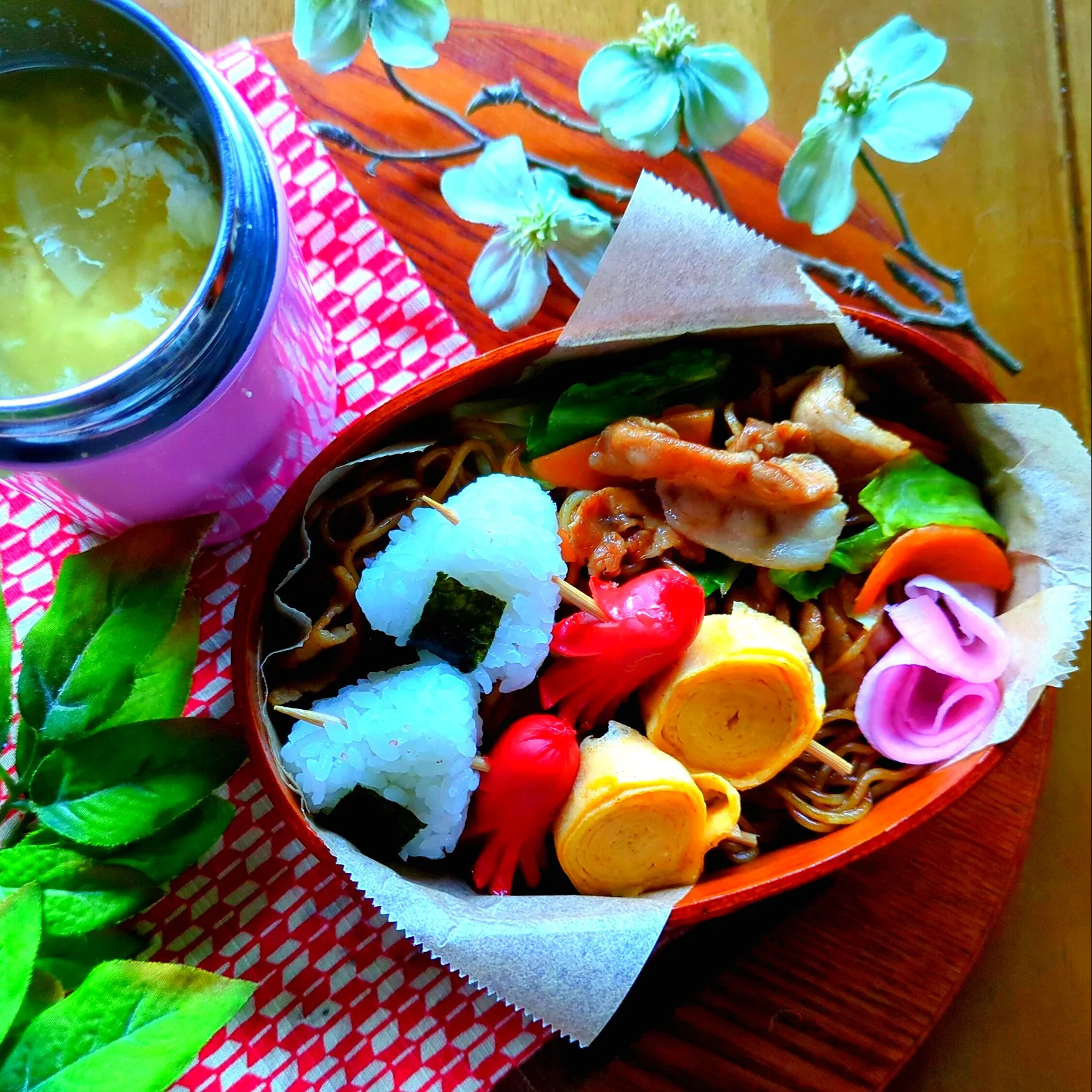 ✾こにぎり、赤ウィンナー、卵焼き