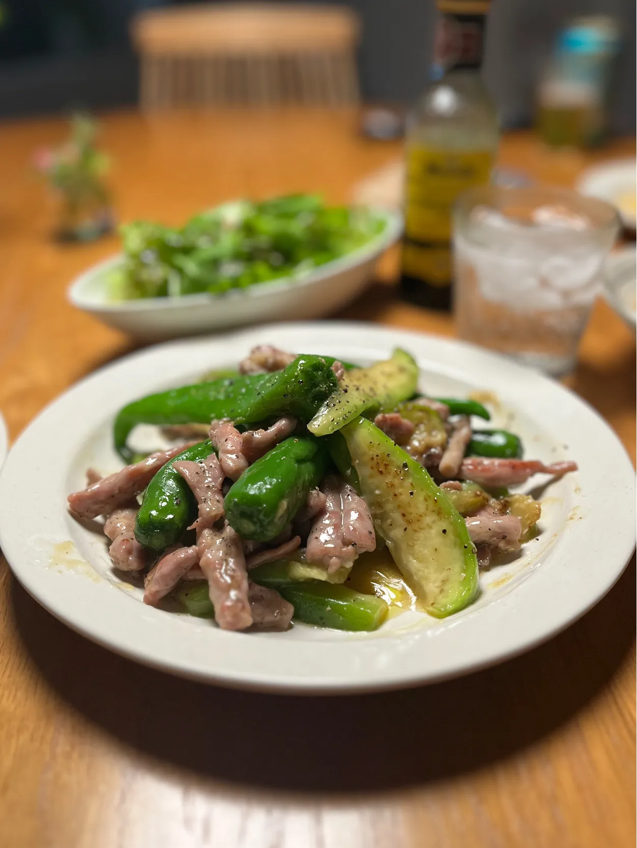 10/13の夕食 白茄子と万願寺とうがらしの塩炒め