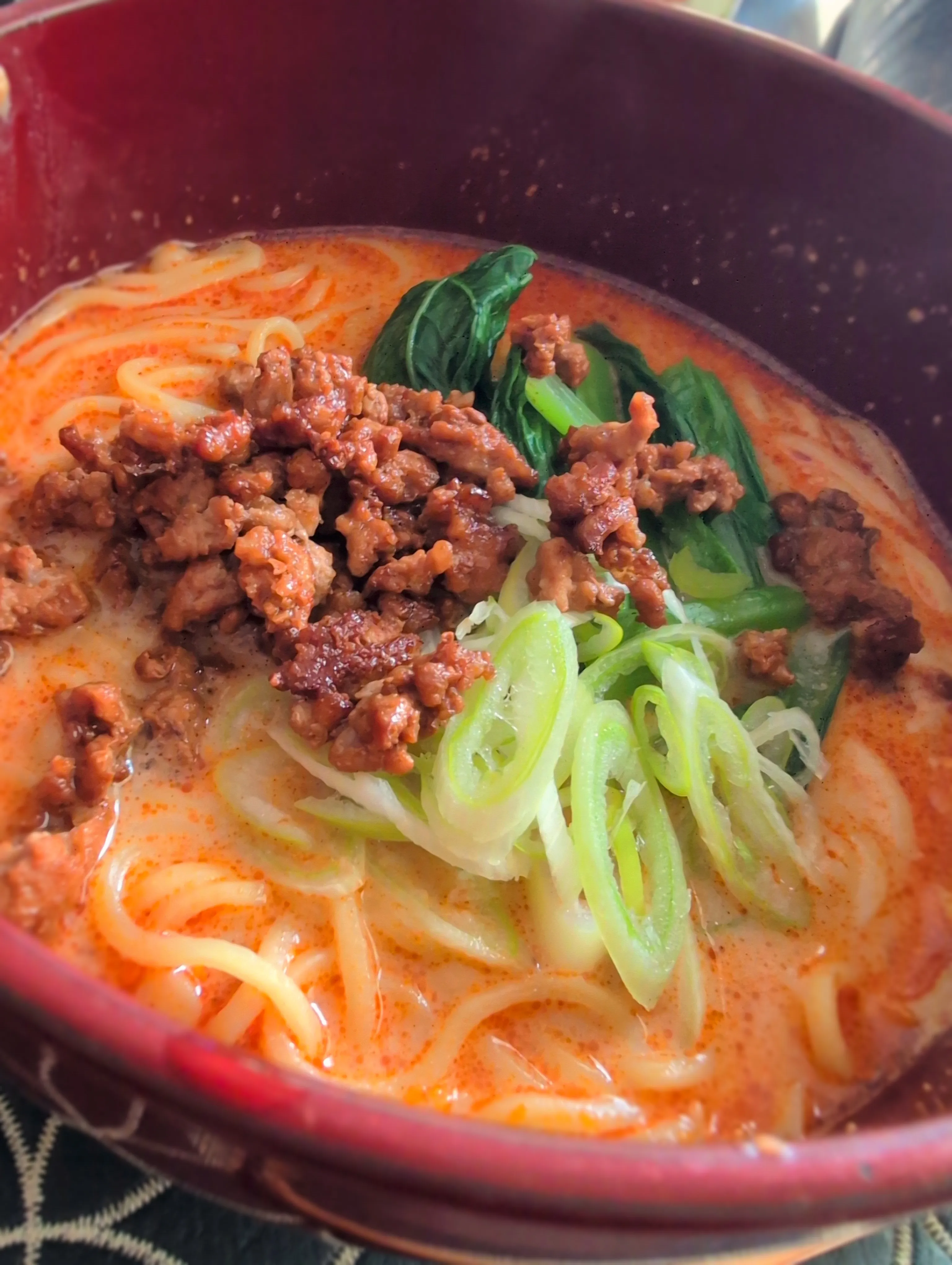 20251012お昼ごはん #担々麺 #肉味噌 #小松菜