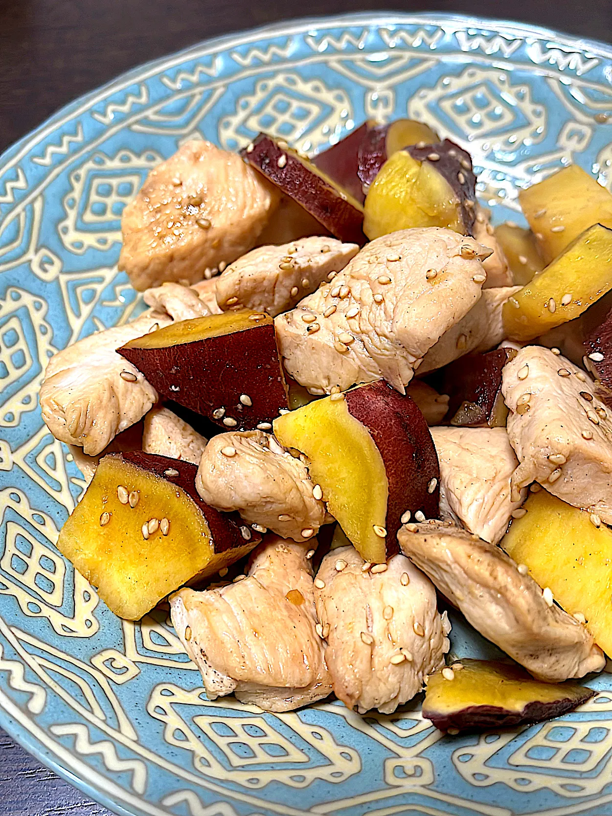• 鶏むね肉とさつまいもの甘辛炒め|ちゃびさん