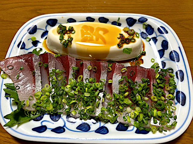 ハマチのお刺身と男奴❗️✌︎('ω')✌︎✨