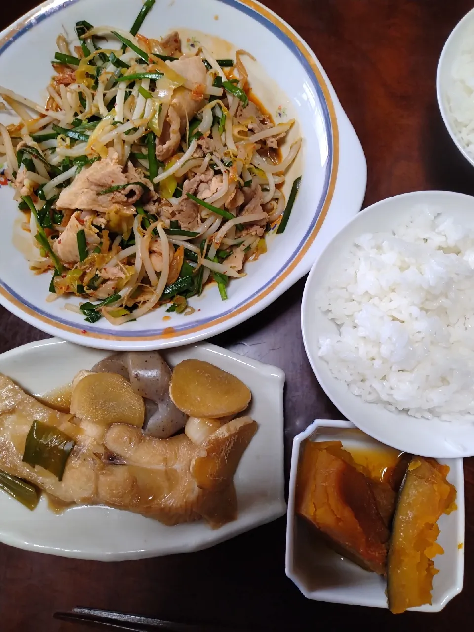 #カラスカレイの煮付け #豚バラキムチ #かぼちゃの煮物