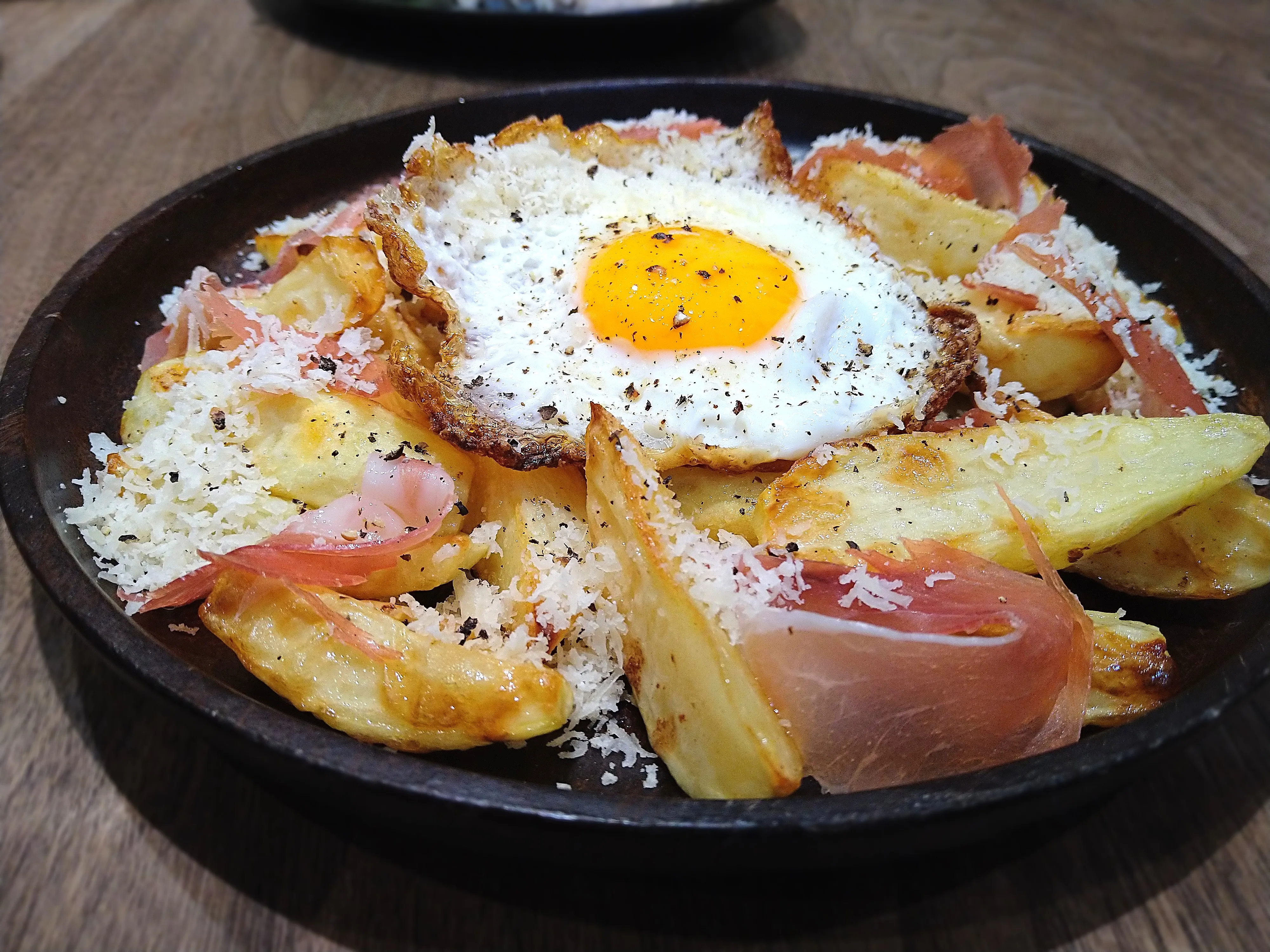 #おつまみ #野菜料理 #じゃがいも#フライドポテト#ハム/ソーセージ/ベーコン #生ハム#目玉焼き#チーズ#パルミジャーノ#ウエボスロトス#スペイン料理