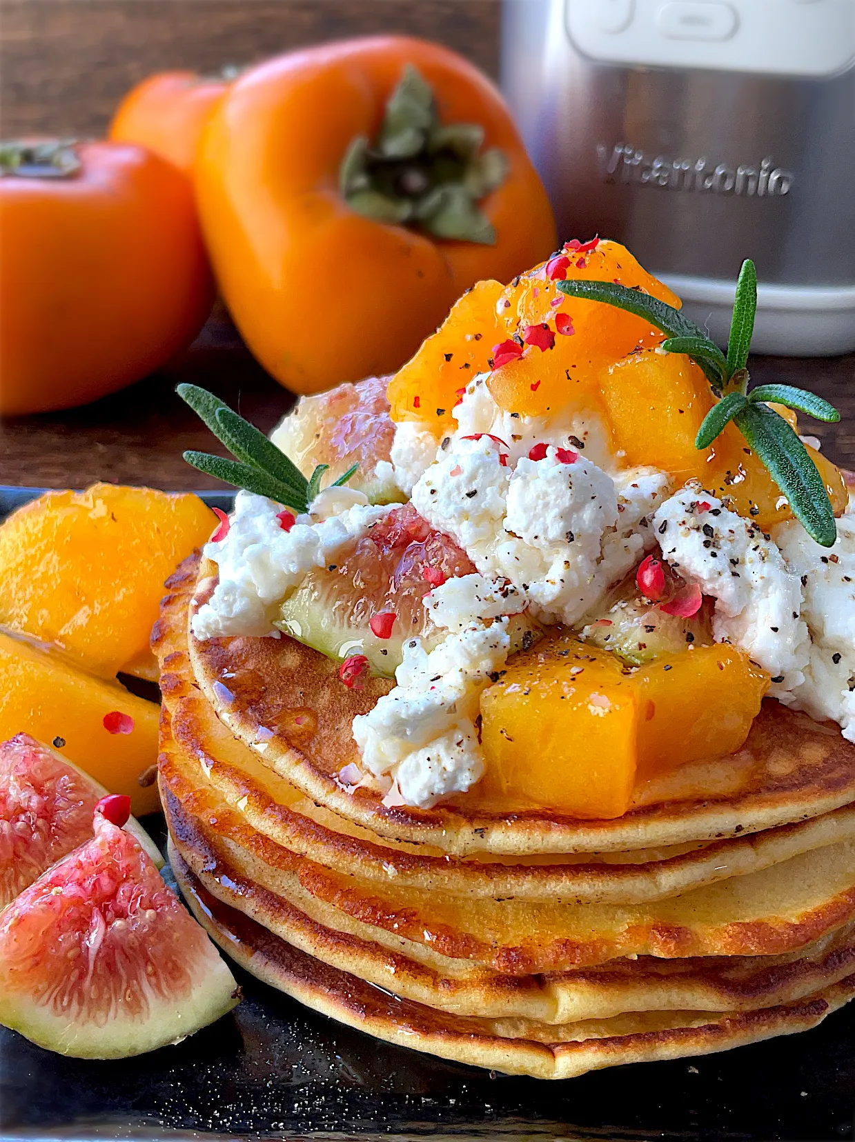 #snapdish #ヨーグルトメーカー #カッテージチーズ #ホエイ #ビタントニオ #パンケーキ #ホエイパンケーキ #おやつ #柿 #無花果 #蜂蜜