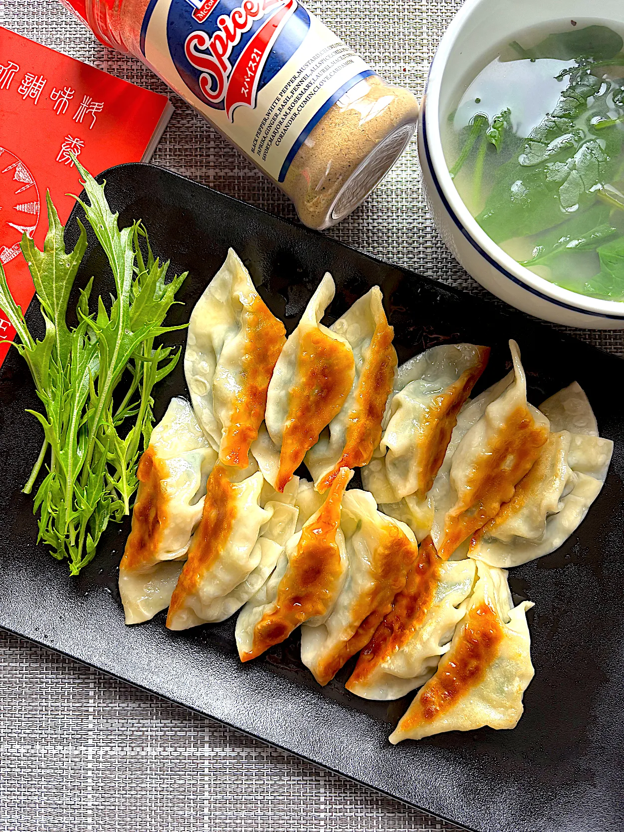たっぷりのほうれん草に旨味とスパイシーな餃子。