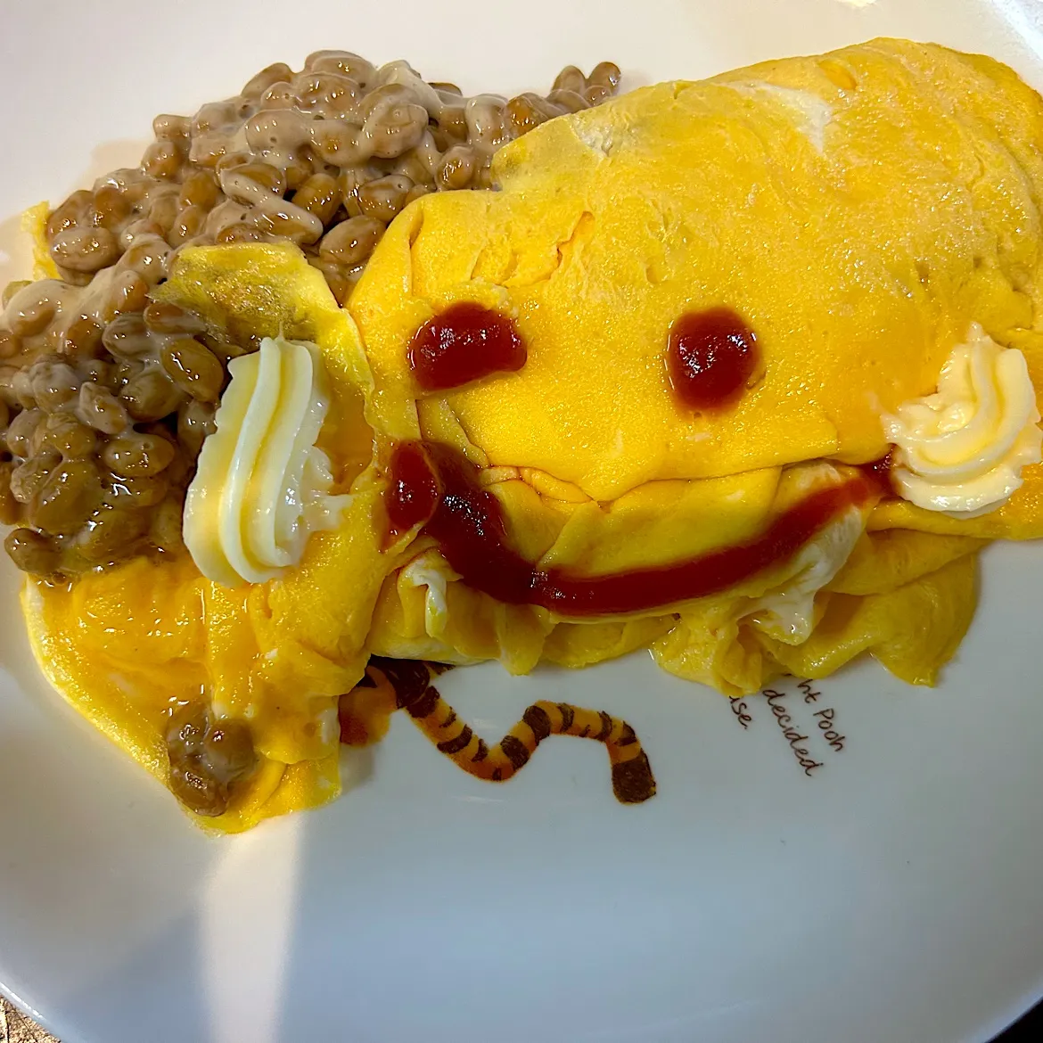 納豆飛び出しまくりのオム納豆です。