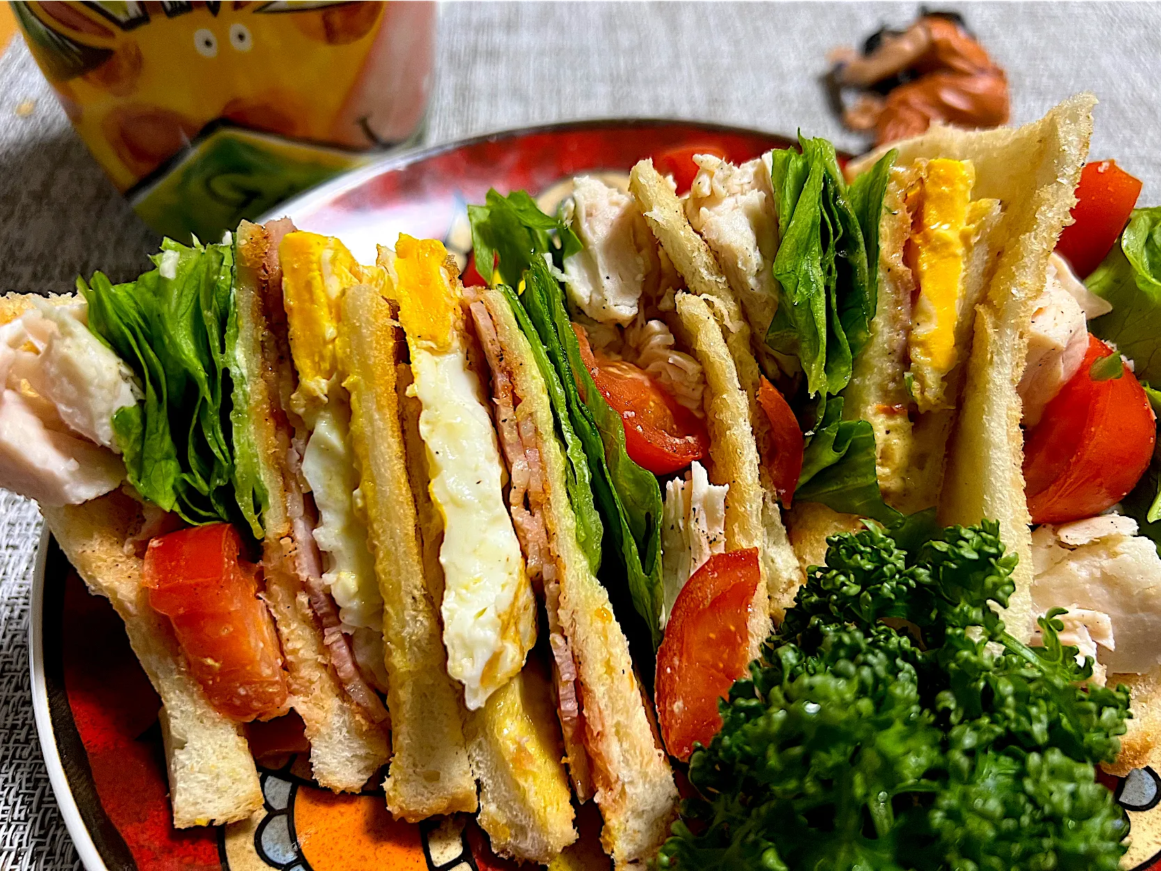 アメリカンクラブハウスサンド、なんかグシャグシャ笑
