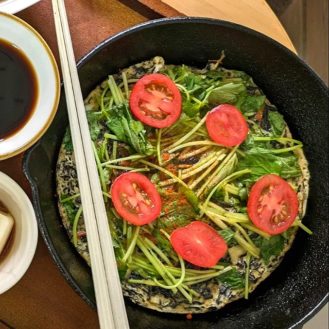 #残り物 #三つ葉 #トマト #ひじき煮 #オープントルティージャ #トルティージャ #スペイン風オムレツ #粉パプリカ #卵液 #PR