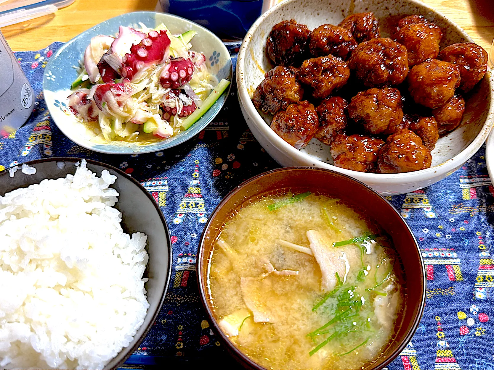肉団子はうちの場合、豚ミンチと合挽ミンチのミックスに淡路産玉葱をたっぷりと入れ、おろし生姜等々で味を整えたもので味付けには酢を使わずに甘辛く照りをつけています