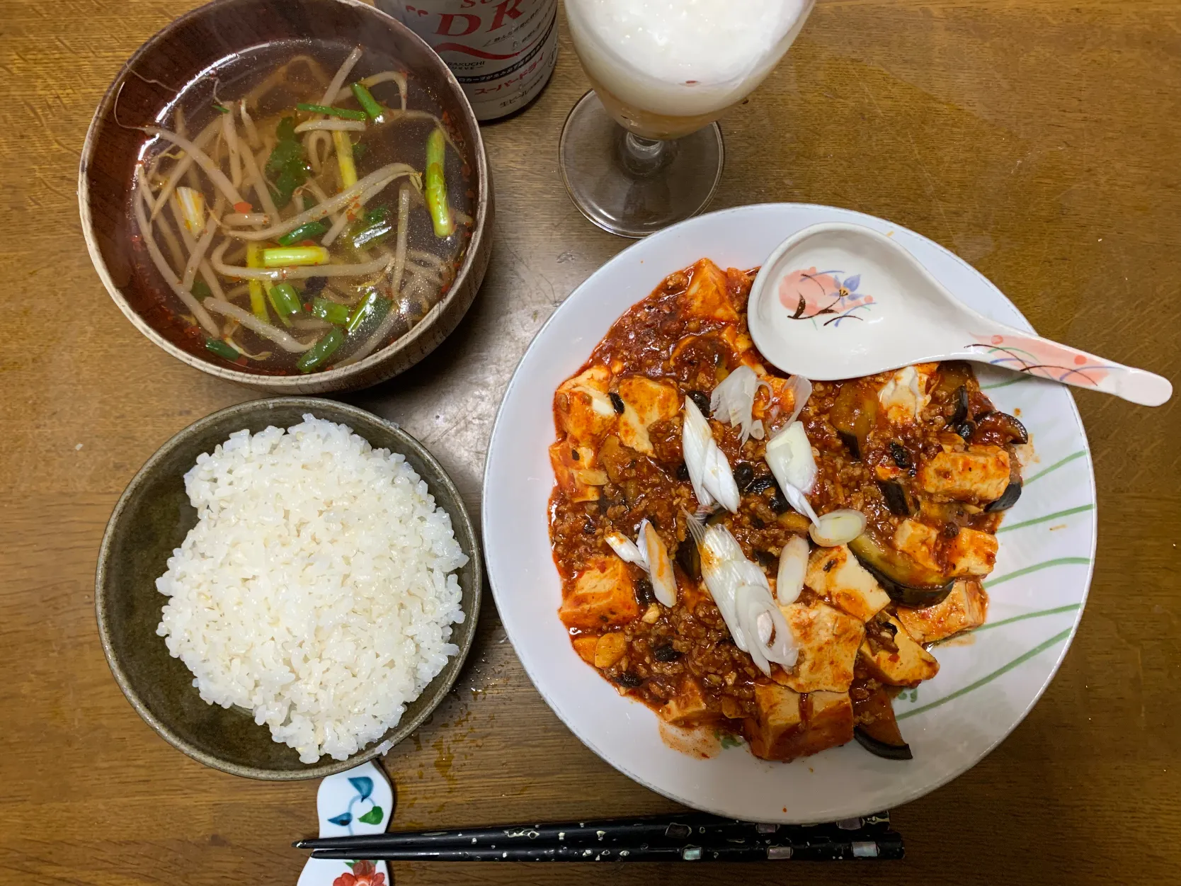 ・モヤシとネギスープ(調味料は麻婆の使いまわし