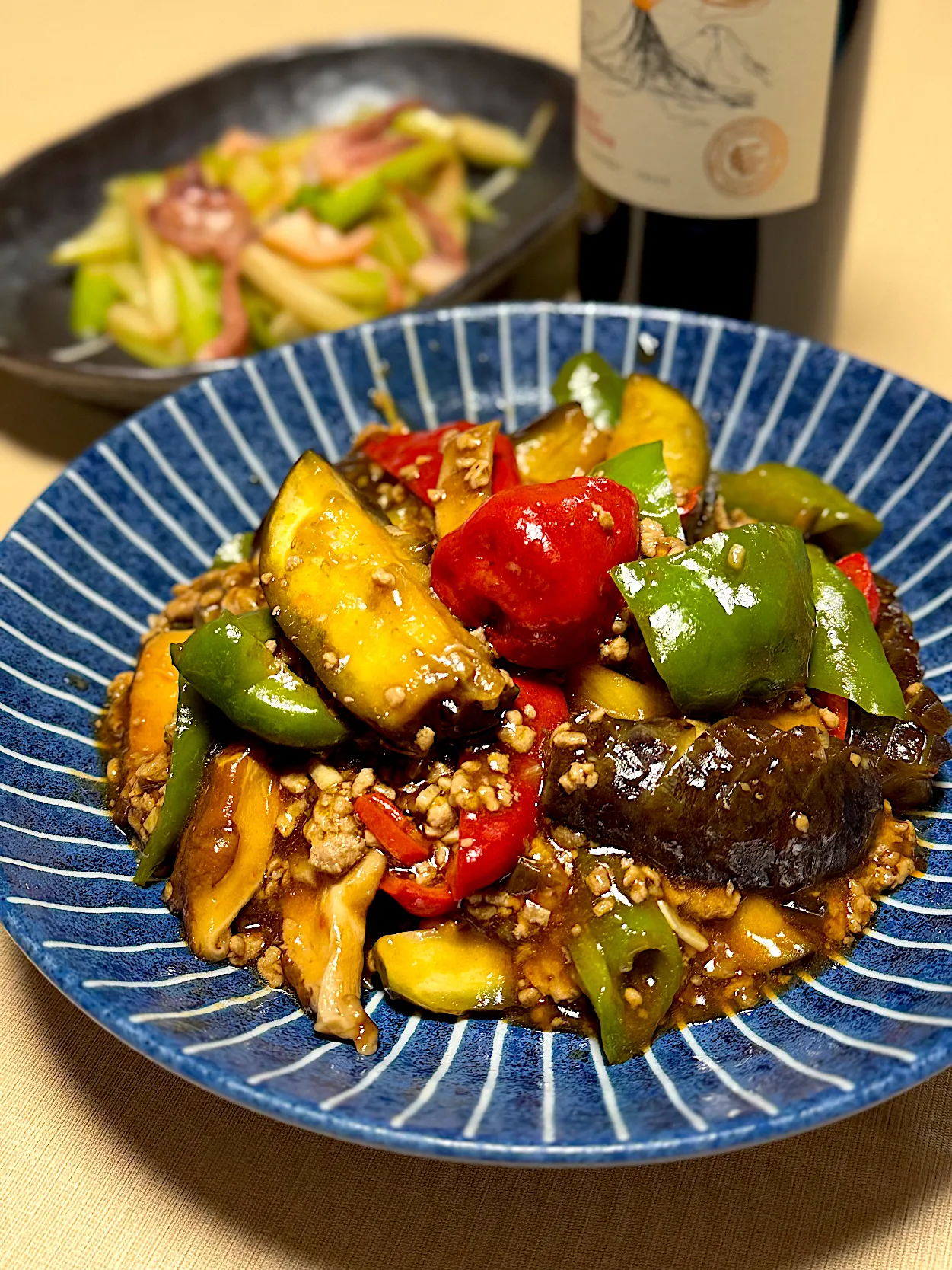 ↠麻婆茄å(ãªã™ãƒ»èµ¤é’ピーマン・生椎茸・ããŽã¨ç”Ÿå§œã¨ãƒ‹ãƒ³ãƒ‹ã‚¯ã®ã¿ã˜ã‚“切り・赤å”è¾›å)(調味料:酒・水・豆æ¿é†¤ãƒ»ç”œéººé†¤ãƒ»ã‚ªã‚¤ã‚¹ã‚¿ãƒ¼ã‚½ãƒ¼ã‚¹ãƒ»é¶ã‚¬ãƒ©ã‚¹ãƒ¼ãƒ—ã®ç´ ・米油・水溶ãç‰‡æ —ç²‰)