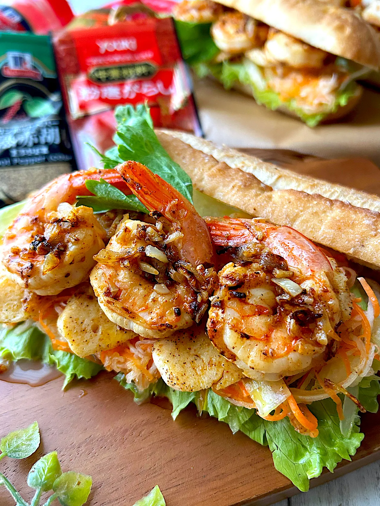息子はレバーペーストが苦手だから、息子のだけマーガリンにしたけど、ガーリックシュリンプ🦐入れたのは正解だったよー🙆♀️