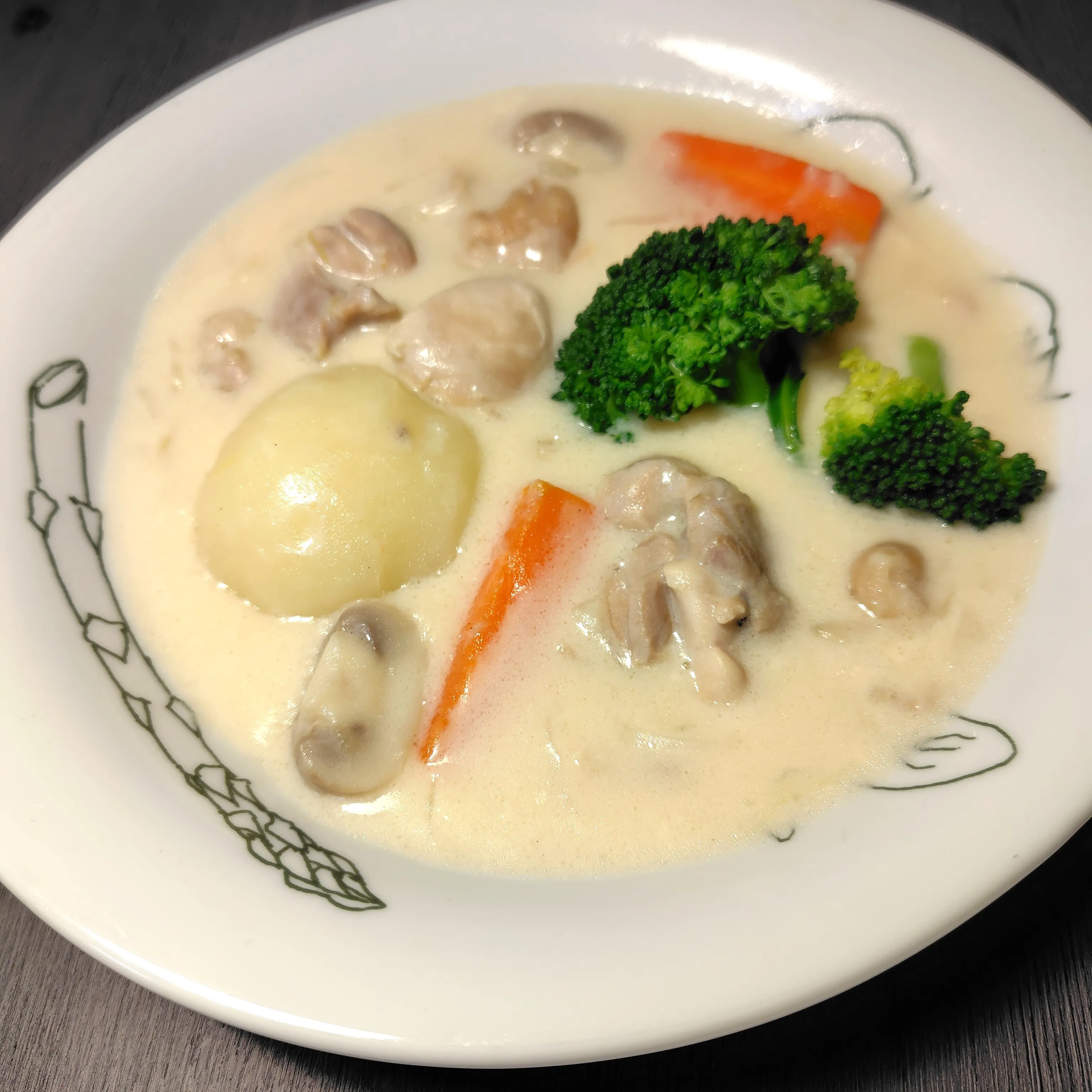鶏肉、玉ねぎ、にんじん、じゃがいも、マッシュルーム、ブロッコリー