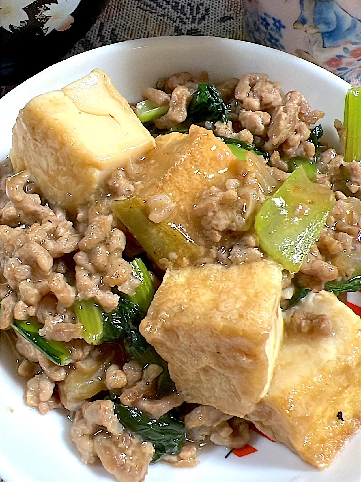 小松菜と厚揚げのひき肉餡掛け