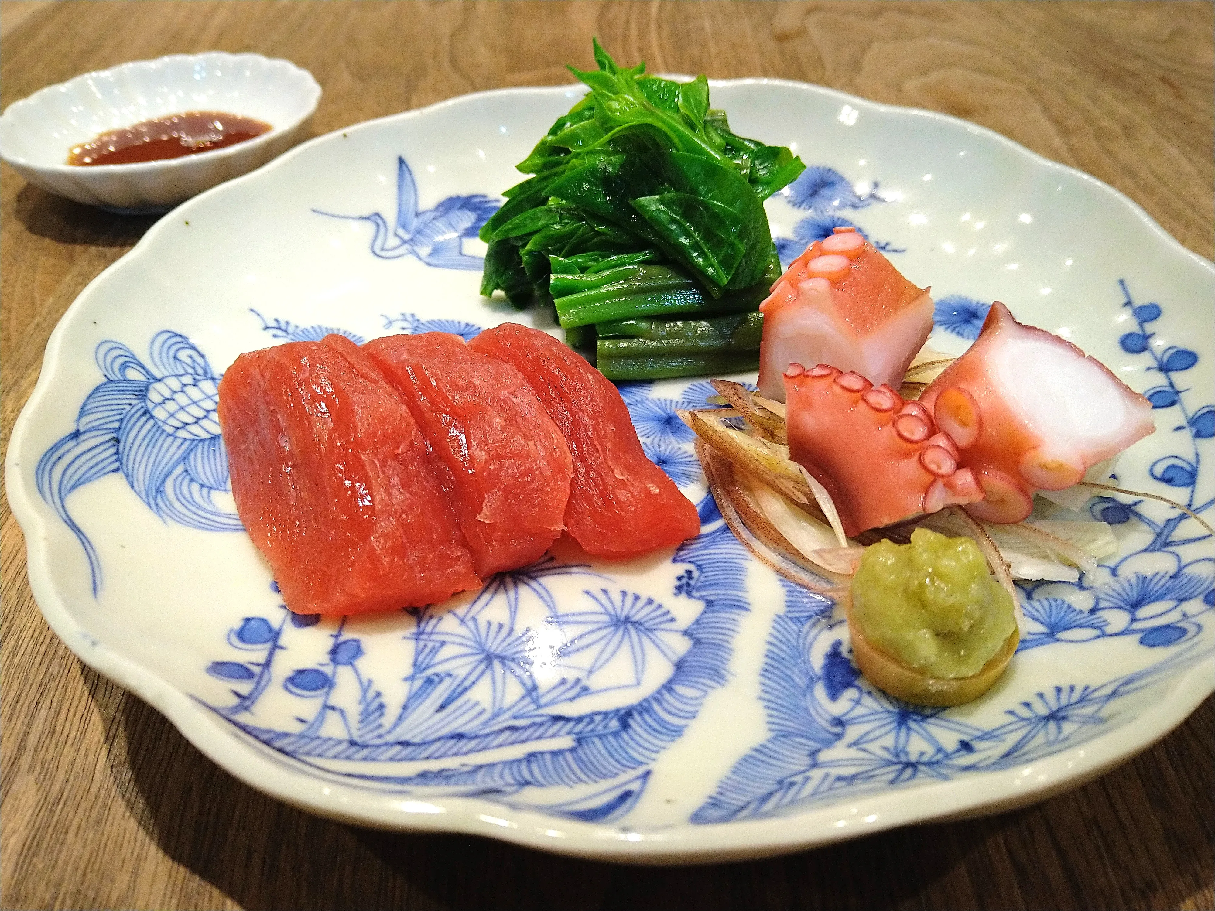 #お刺身/マリネ#お造り #魚料理 #鮪#本鮪#たこ#野菜料理 #妻#つるむらさき#みょうが#刻みわさび#和食