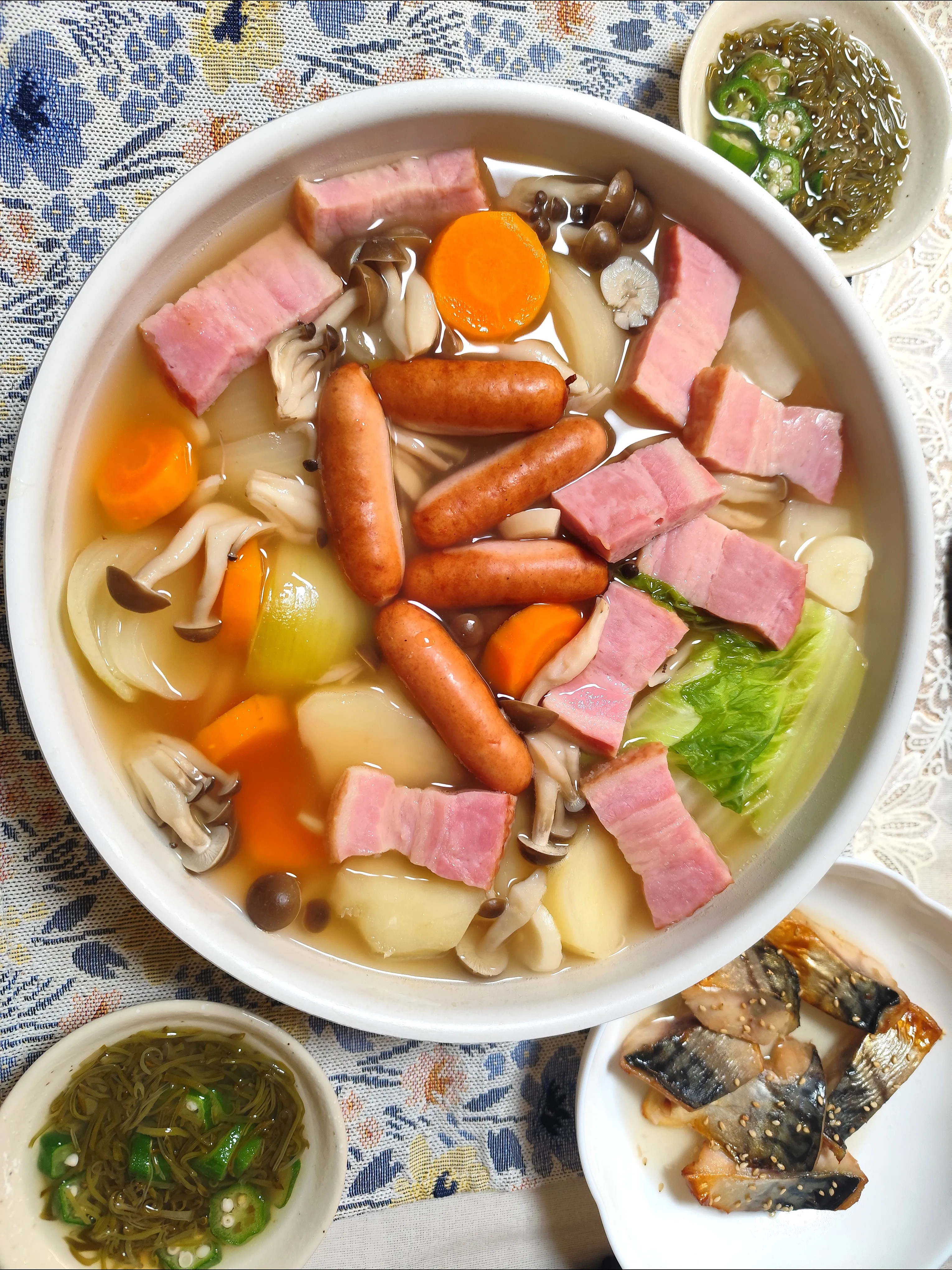 厚切りベーコンとウインナーの出汁が効いて凄く美味しそうです🤤