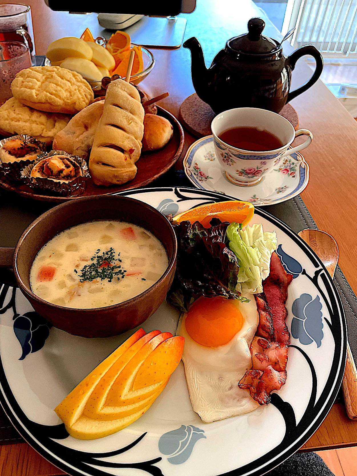 #モーニングプレート#パニルカンダ茶園のルフナ紅茶#クラムチャウダー#昨日焼いたパンたち