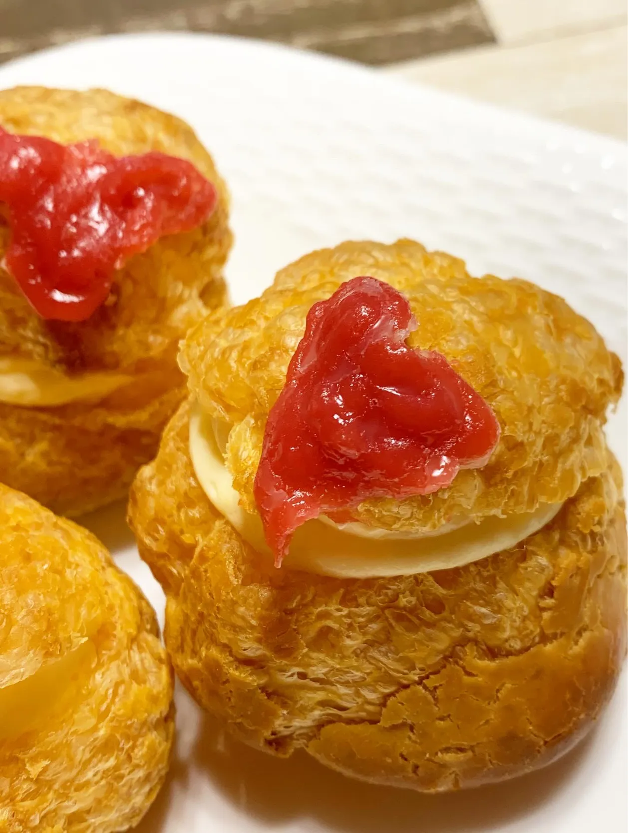 久しぶりにシュークリームを焼きました。中はカスタードクリームに生クリームを混ぜたクリームです。#シュークリーム