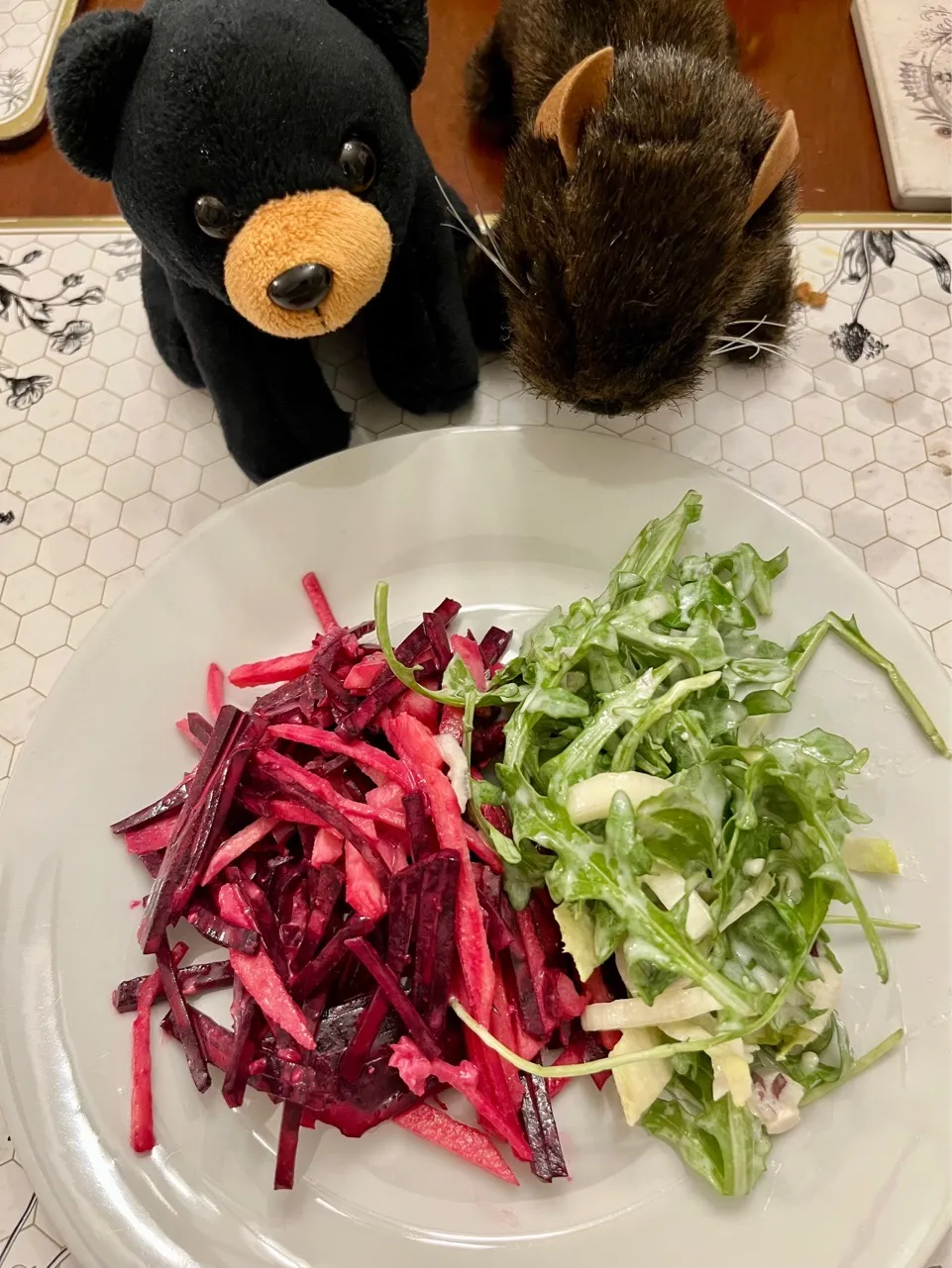 今日はブルーチーズのドレッシングを使ったサラダを作って、ベンとマーリンにポーズを取ってもらいました。
