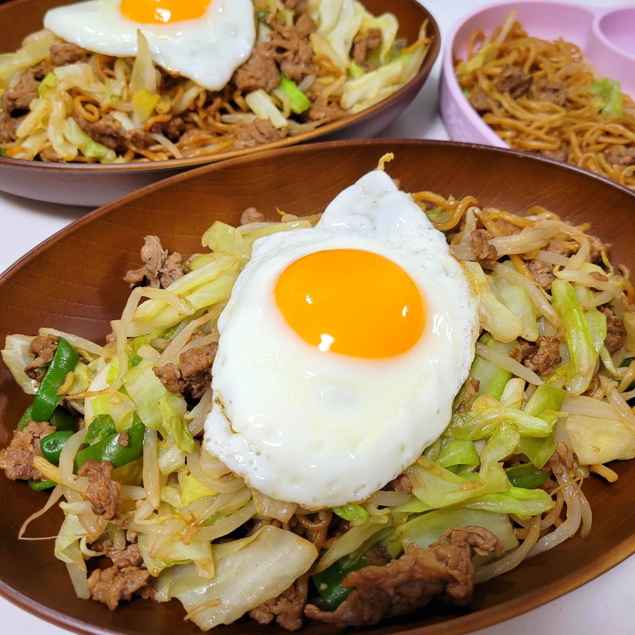初めて牛肉の焼きそばにしてみた♪ヽ(´▽`)/