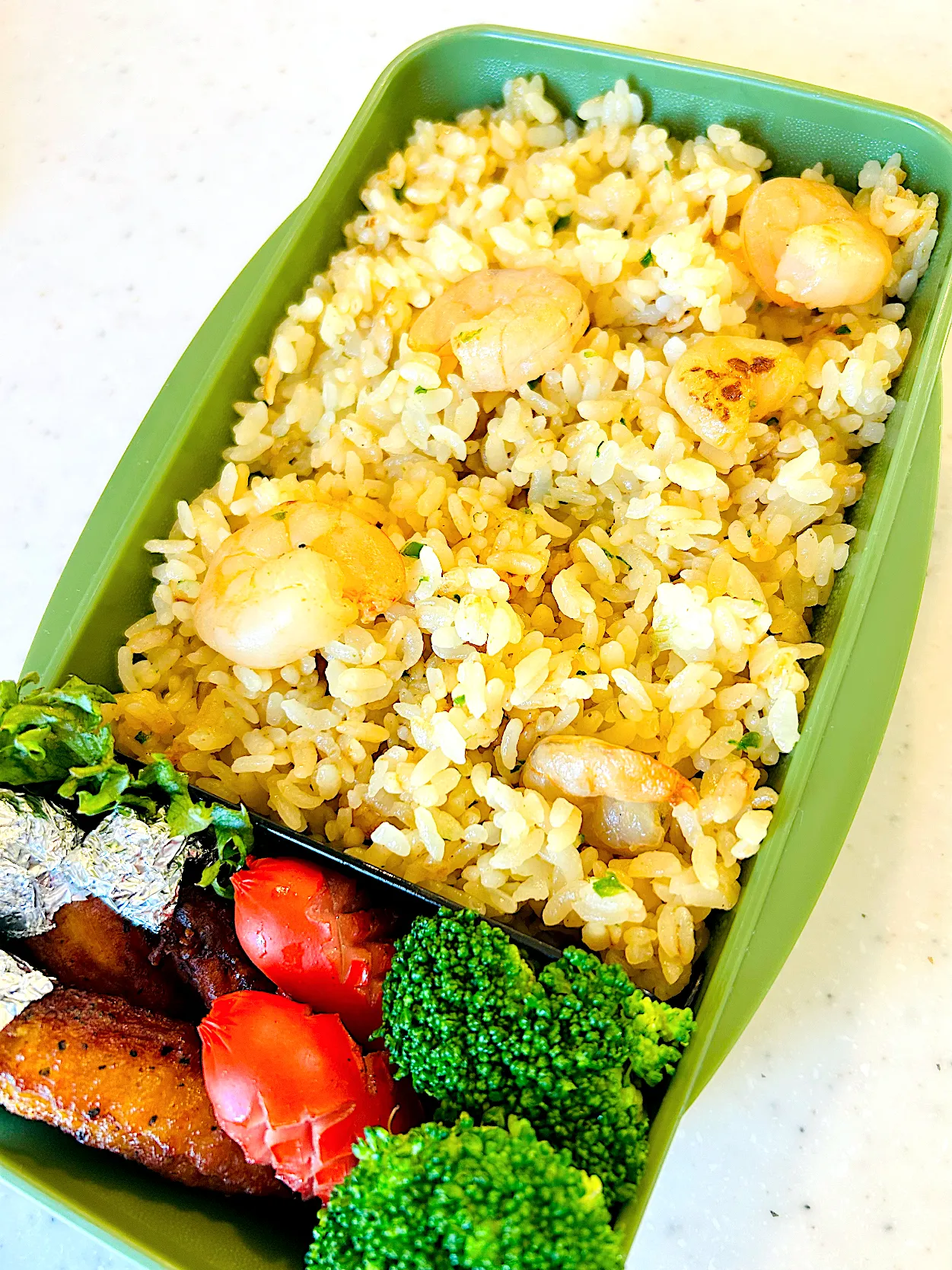 はじめて作ってみたよエビピラフ弁当☺︎|きなこもちさん