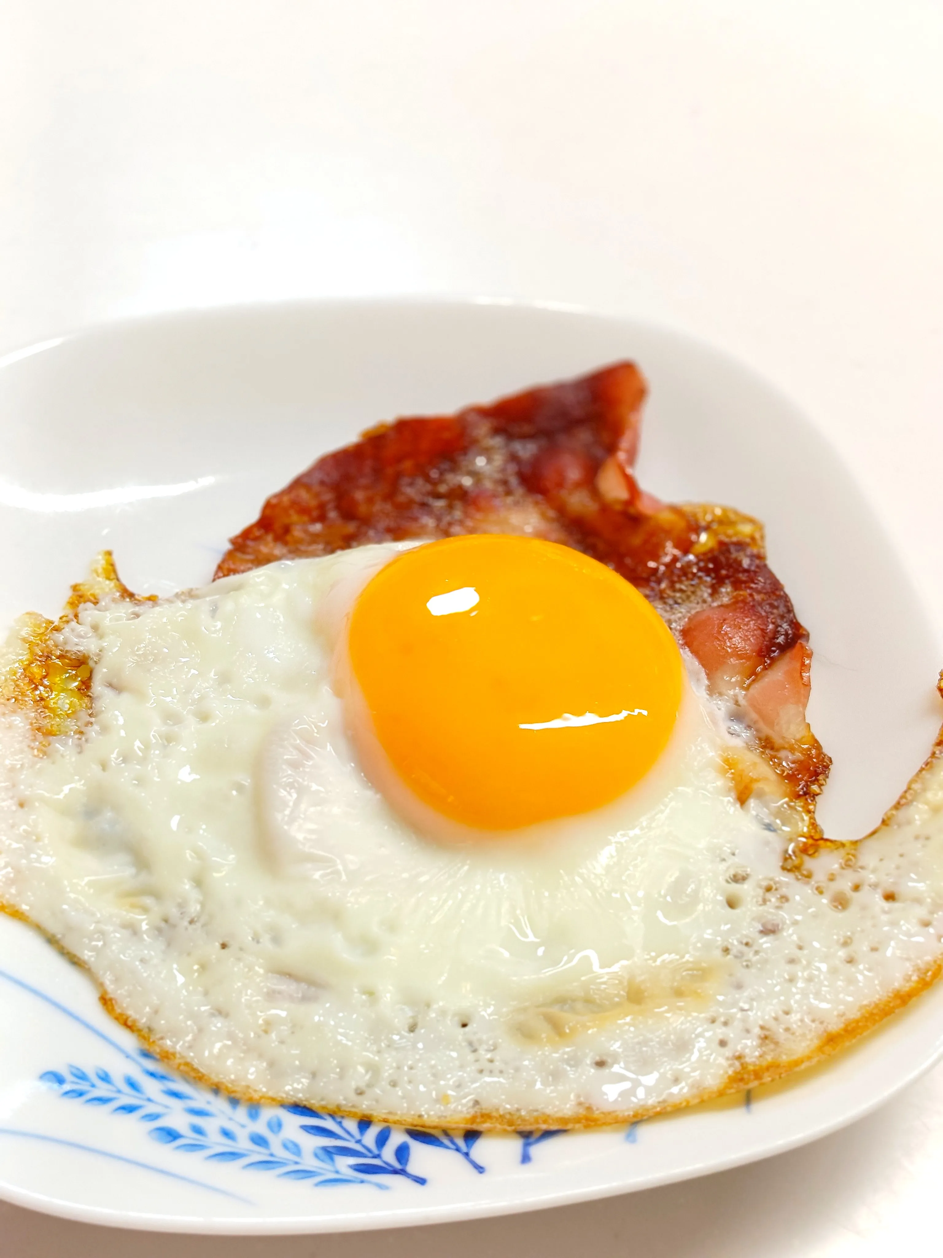 ⚠️ ベーコンの脂で卵が流れてしまい、留めるのに苦労した