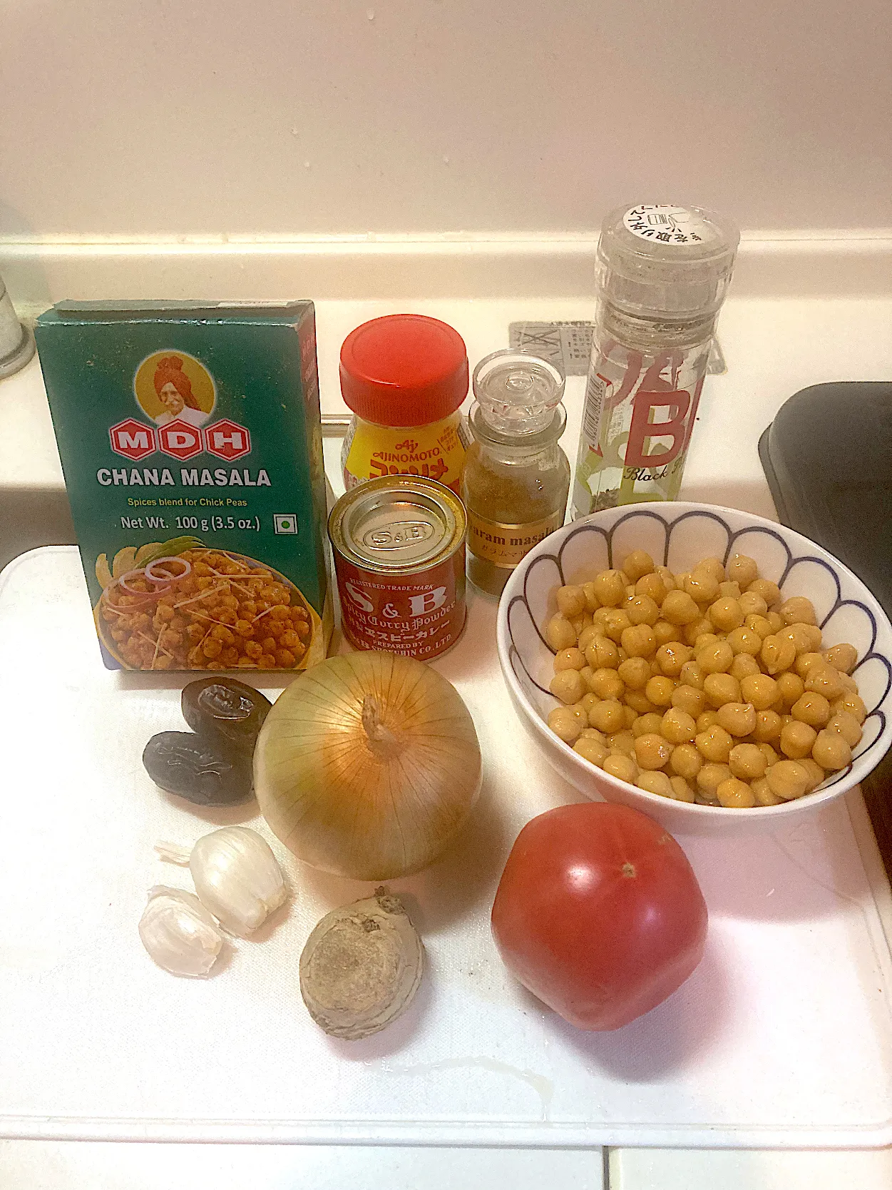 今日の晩ご飯はMDHのチャナマサラ(カリーパウダー)を使ってチャナマサラ(ひよこ豆のカレー)を作ります