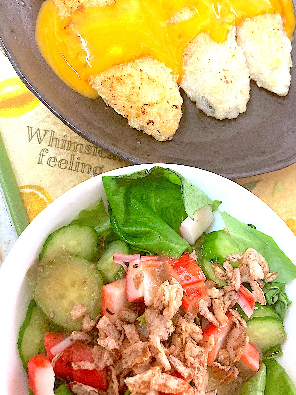 白身魚フライ、サラダ